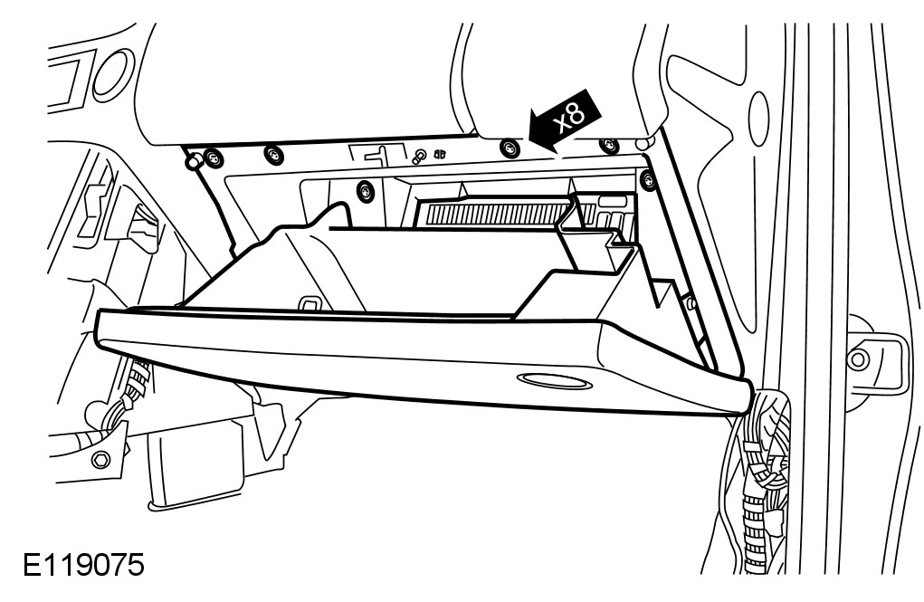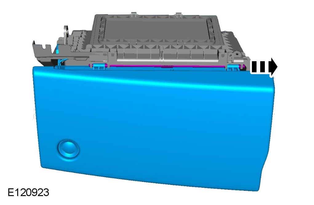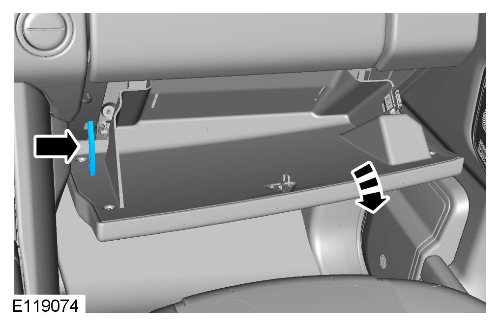- Disconnect the electrical connector from the lower glove compartment latch.