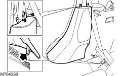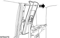 ^ Reposition the rear safety belt through the C-pillar upper trim panel.