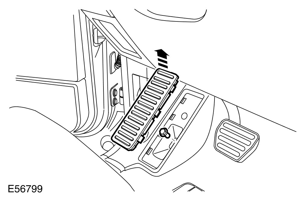 1 Remove the front scuff plate trim panel. For additional information, refer to Front Scuff Plate Trim Panel Service and Repair