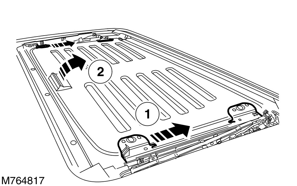 2 Install the roof opening panel glass. For additional information, refer to Roof Opening Panel Glass Roof Opening Panel Glass