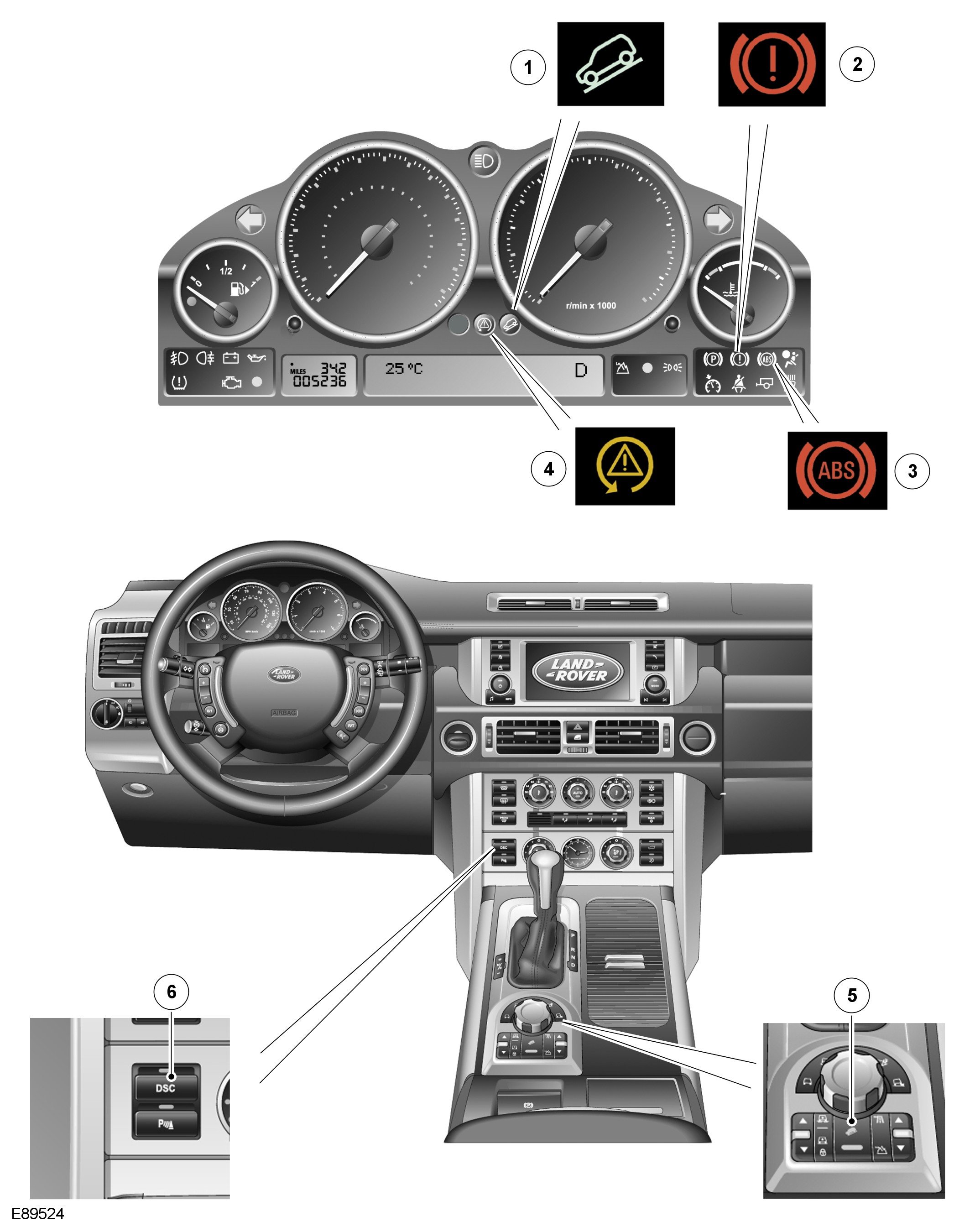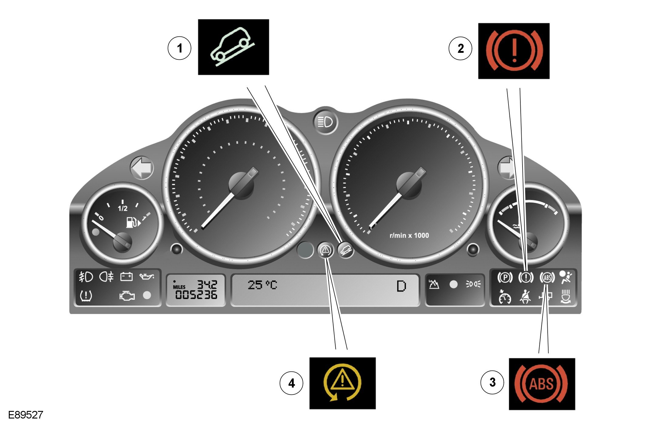 The instrument cluster contains 2 types of indicator lamps to display the operating status of the selected anti-lock control/traction control functions. The indicator lamps provide a visual notification of either a system warning or information indication to the driver. For additional information, refer to Instrument Cluster