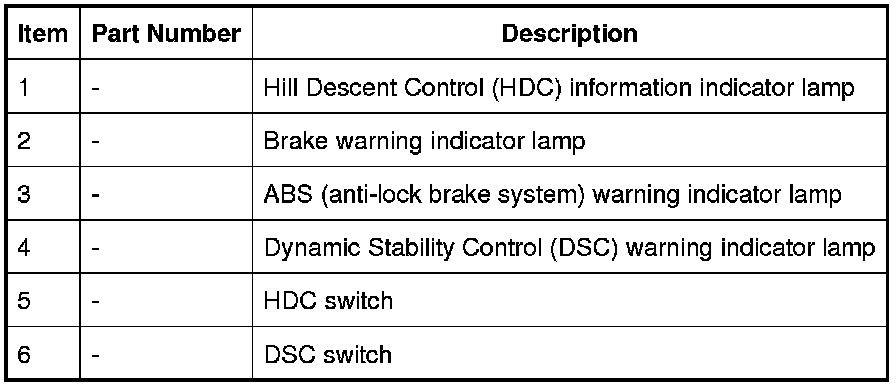 The status of the DSC switch selection is shown by the DSC warning indicator lamp. The DSC warning indicator lamp is extinguished while DSC is selected on, and continuously illuminated while DSC is selected off.