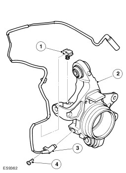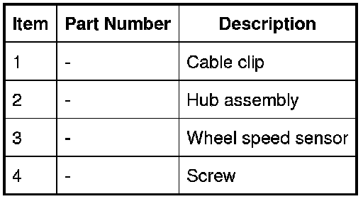 An active wheel speed sensor is installed in each wheel hub to provide the ABS (anti-lock brake system) module with a rotational speed signal from each road wheel. The head of each wheel speed sensor is positioned close to a 48 tooth sensor ring on the outer diameter of the constant velocity joint of the drive halfshaft. A flying lead connects each sensor to the vehicle wiring.
