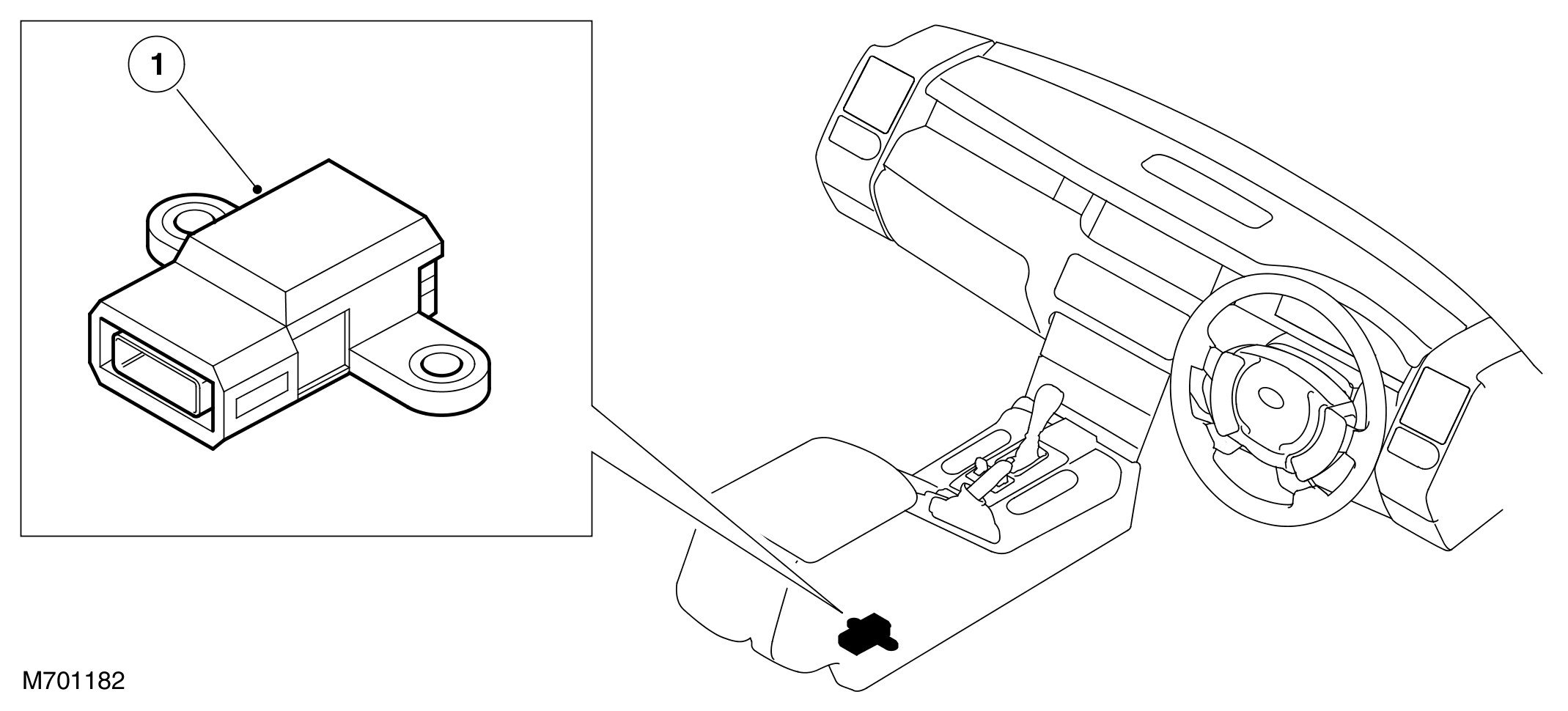 The sensor cluster is located beneath the floor console and provides information of vehicle yaw rate and lateral acceleration to the ABS (anti-lock brake system) module. The sensor is internally damped to isolate it from body/chassis vibrations and is secured to the transmission tunnel with 2 bolts.