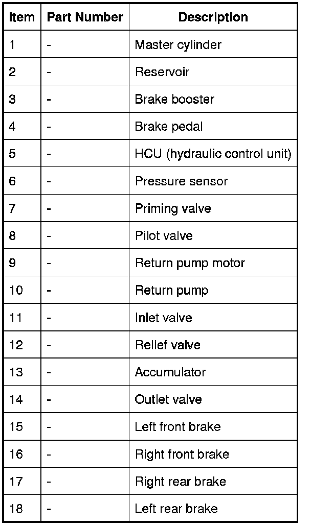For active braking, the ABS (anti-lock brake system) module energizes the pilot valves and priming valves, starts the return pump and energizes all of the inlet valves. Brake fluid, drawn from the reservoir through the master cylinder and priming valve, is pressurized by the return pump and supplied to the inlet valves. The ABS (anti-lock brake system) module then operates the inlet valves and outlet valves, as required, to modulate the pressure in the individual brakes. Some noise may be generated during active braking.