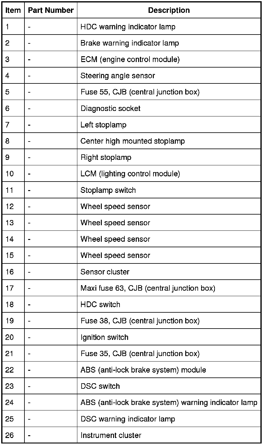 The ABS (anti-lock brake system) module monitors the tracking stability of the vehicle using inputs from the wheel speed sensors, the steering angle sensor and the sensor cluster. The tracking stability is compared with stored target data and, whenever the tracking stability deviates from the target data, the ABS (anti-lock brake system) module intervenes by applying the appropriate brakes. On vehicles with automatic transmission, when the DSC function is active, the ABS (anti-lock brake system) module also signals the TCM (transmission control module) to prevent gear shifts.