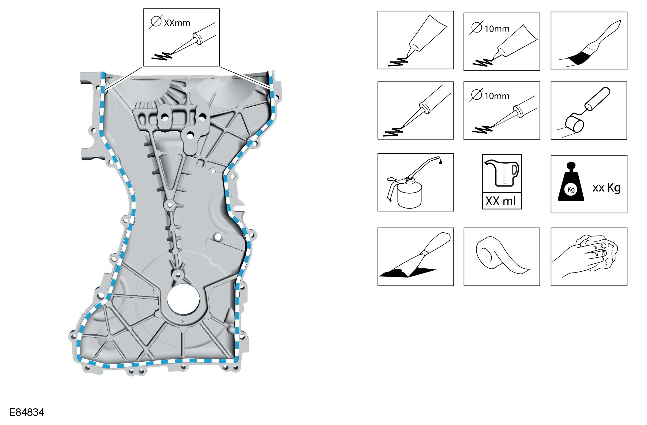 Instruction symbols are used to apply sealer, lubricant, weight, tape or cleaning detergent to a component.