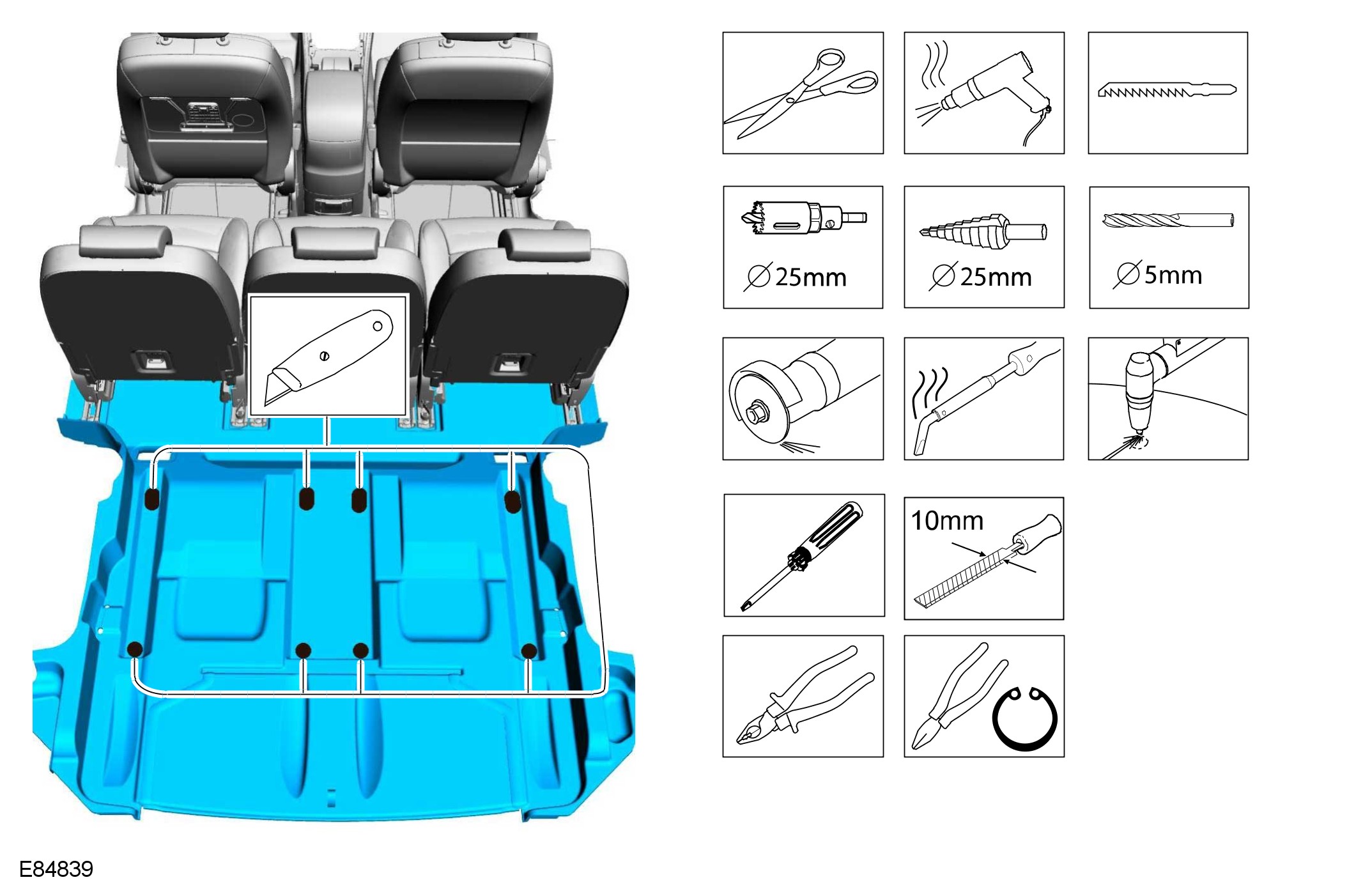 - Pale Blue - is for the special tool(s) and general equipment.