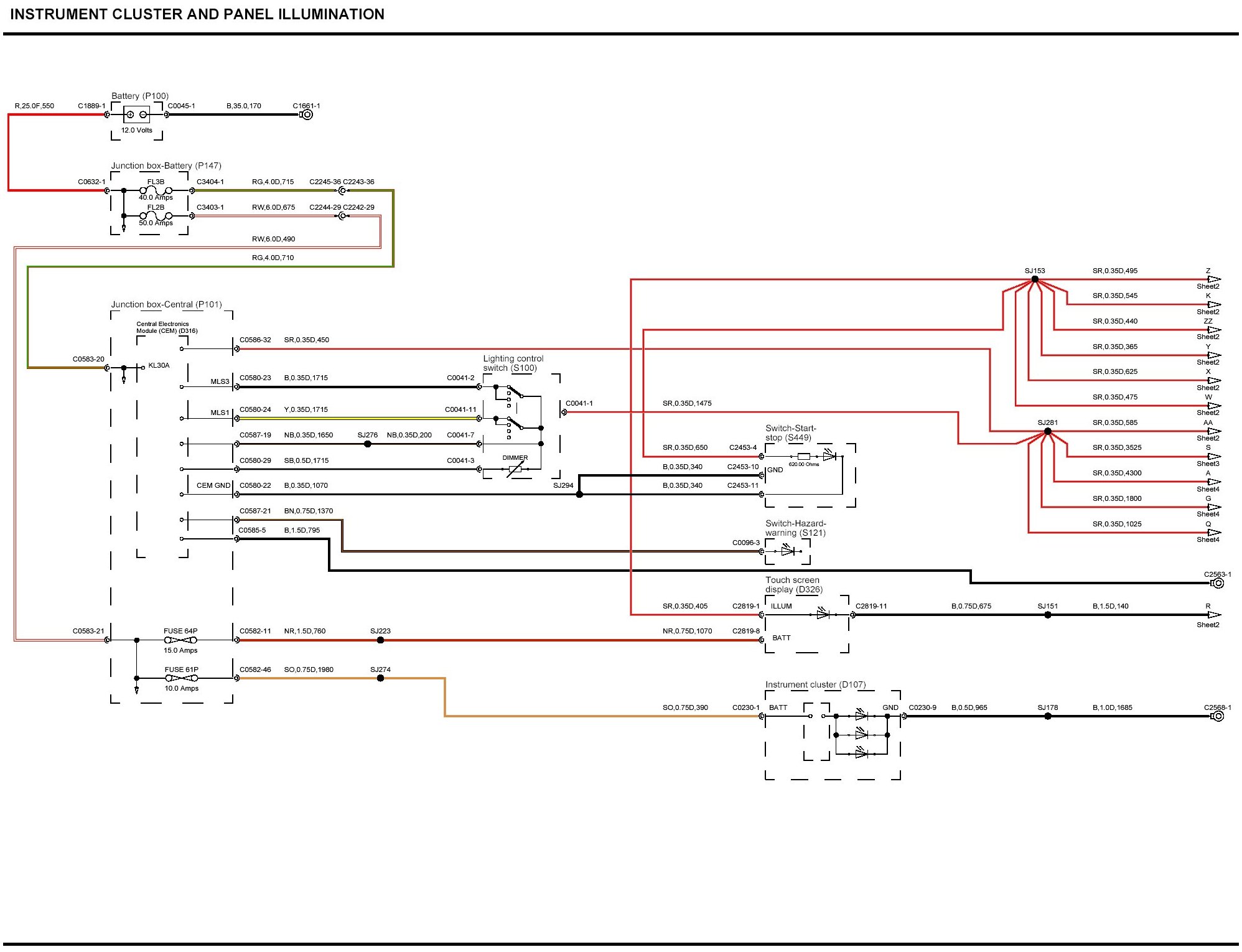 Instrument Cluster And Panel Illumination (Sheet 3):