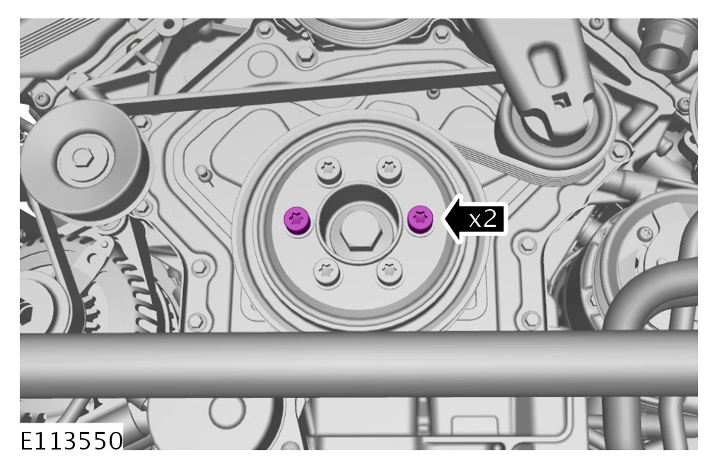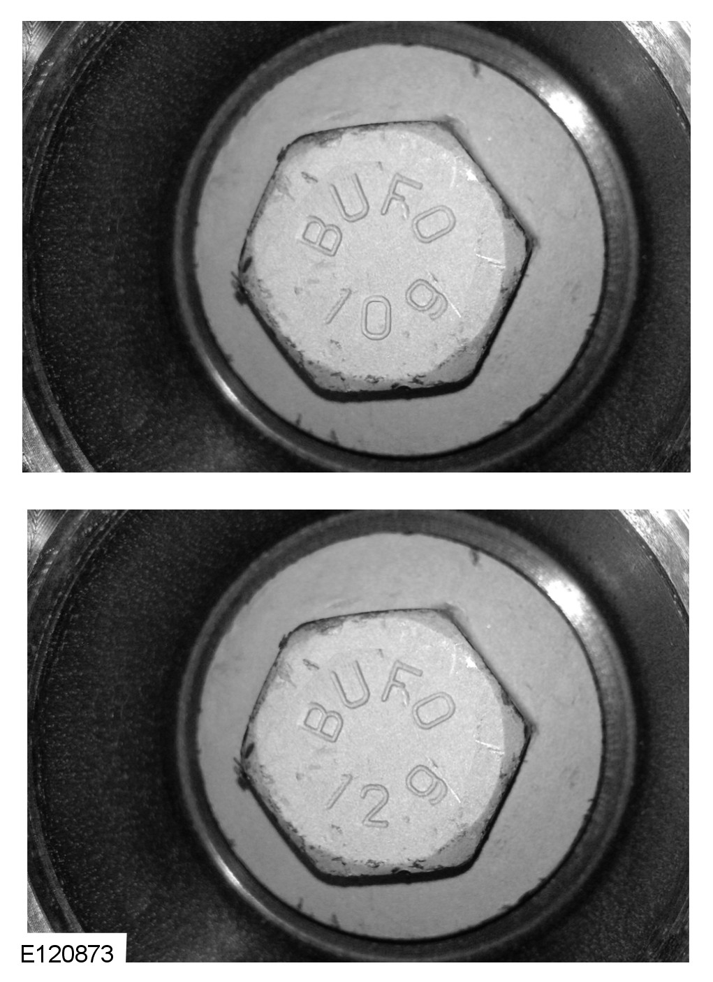 CAUTION: Before removing the crankshaft pulley bolt, note the numbers on the bolt head. If the bolt head shows 10.9, the bolt must be removed counter clockwise. If the bolt head shows 12.9, the bolt must be removed clockwise. Failure to follow this instruction may result in damage to the crankshaft.