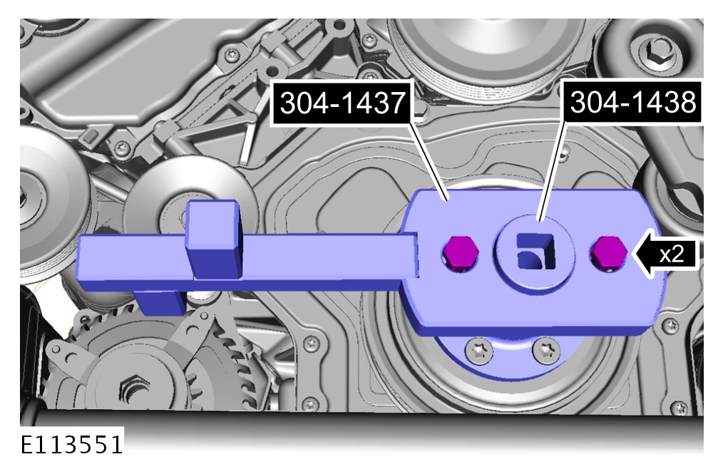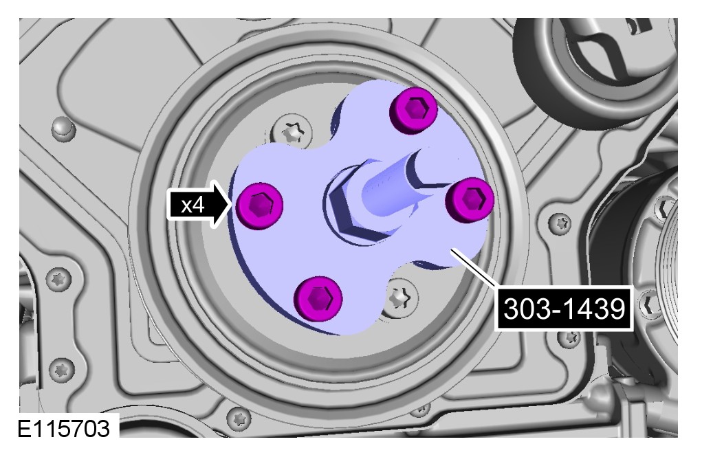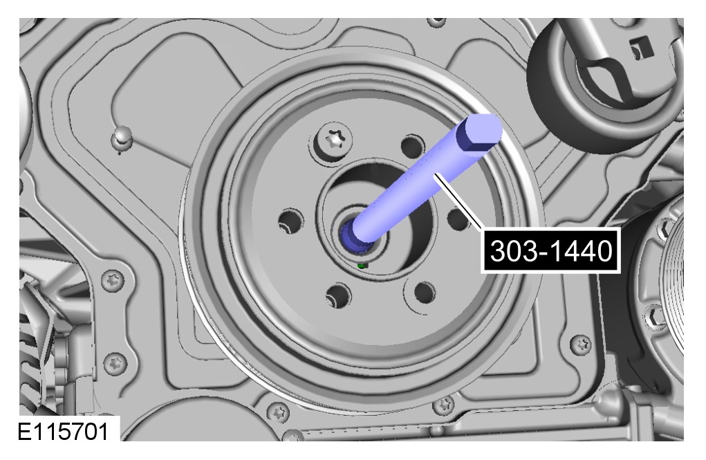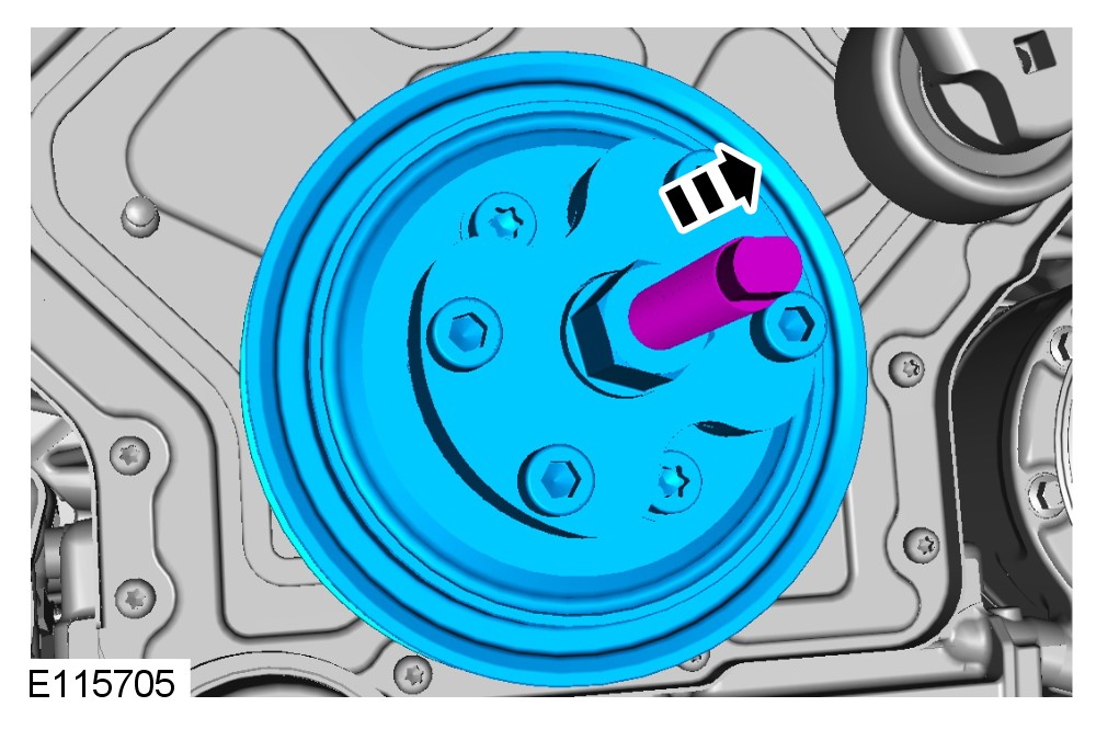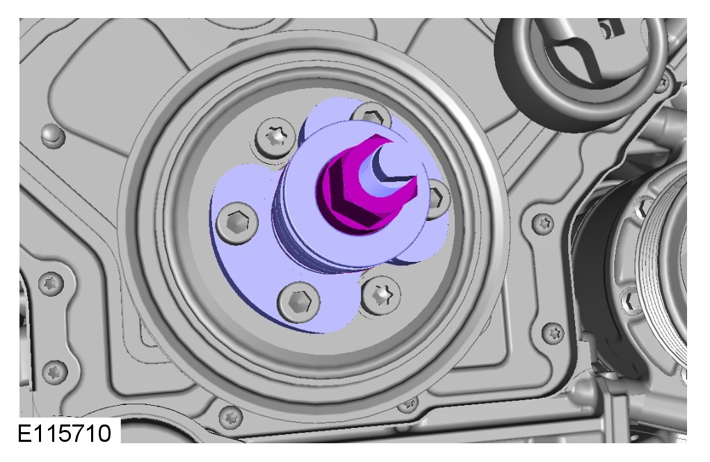 CAUTION: Rotate the crankshaft pulley installation tool anti-clockwise until the pulley is fully located, do not over tighten. Failure to do this may result in damage to the components.