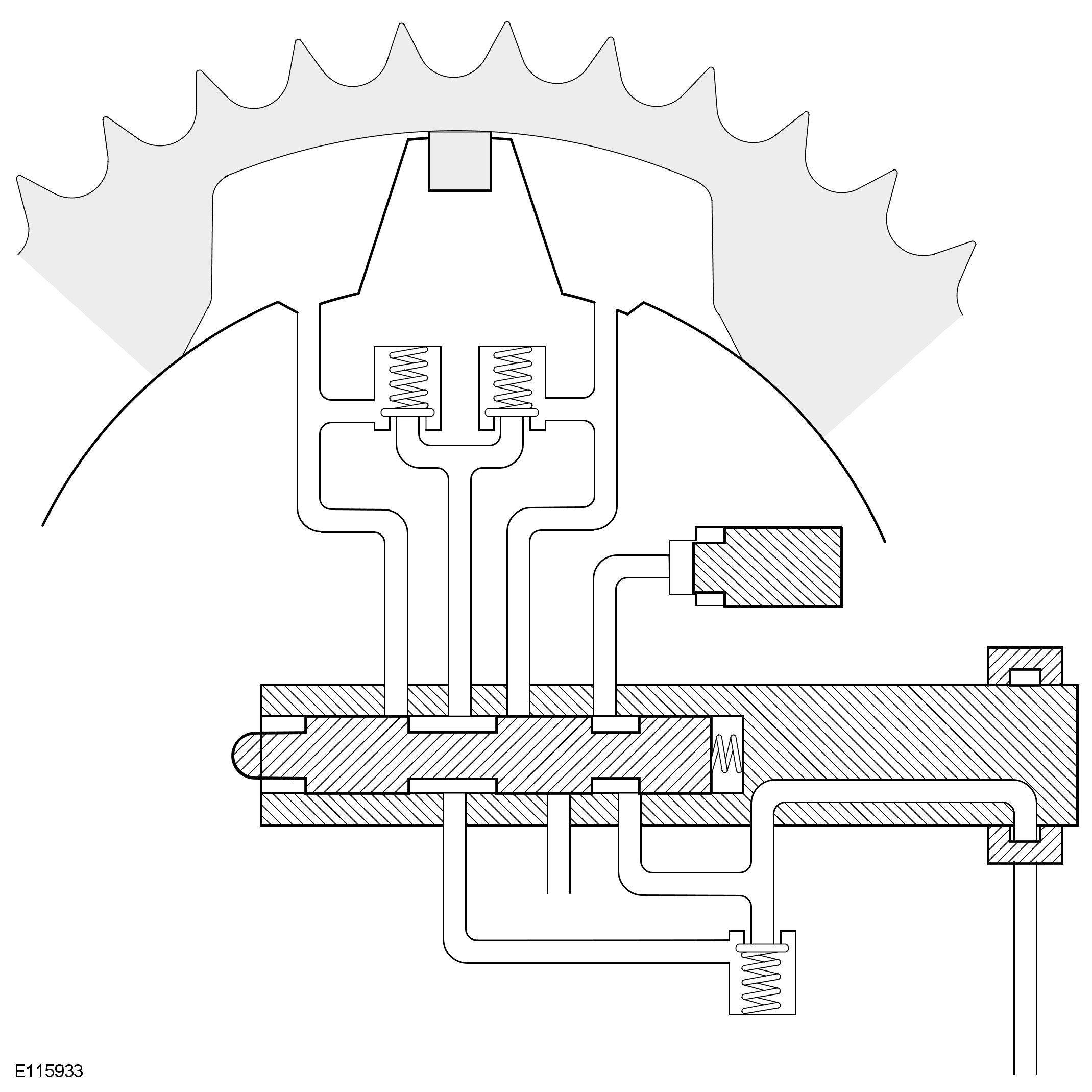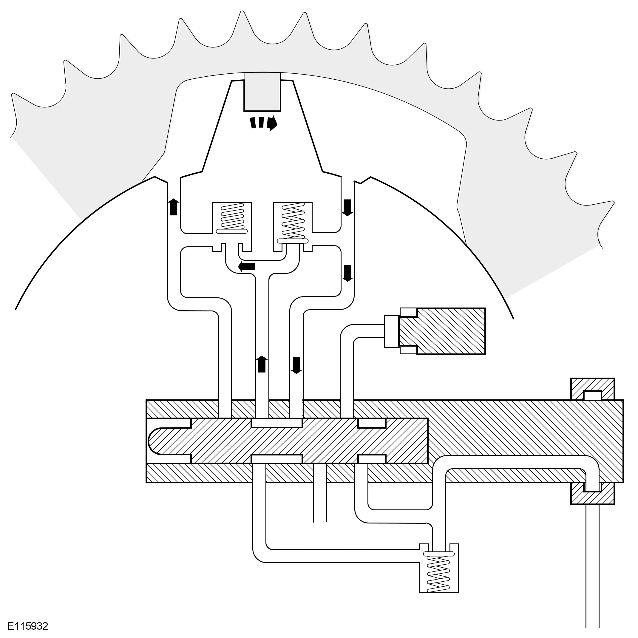Once the camshaft has reached the required timing position the ECM (engine control module) adjusts the signal to the VCT (variable camshaft timing) solenoid to set the spool valve in the null position. In the null position, the advance and retard chamber oil passages are both closed by the spool valve and the rotor assembly is hydraulically locked to the sprocket housing.
