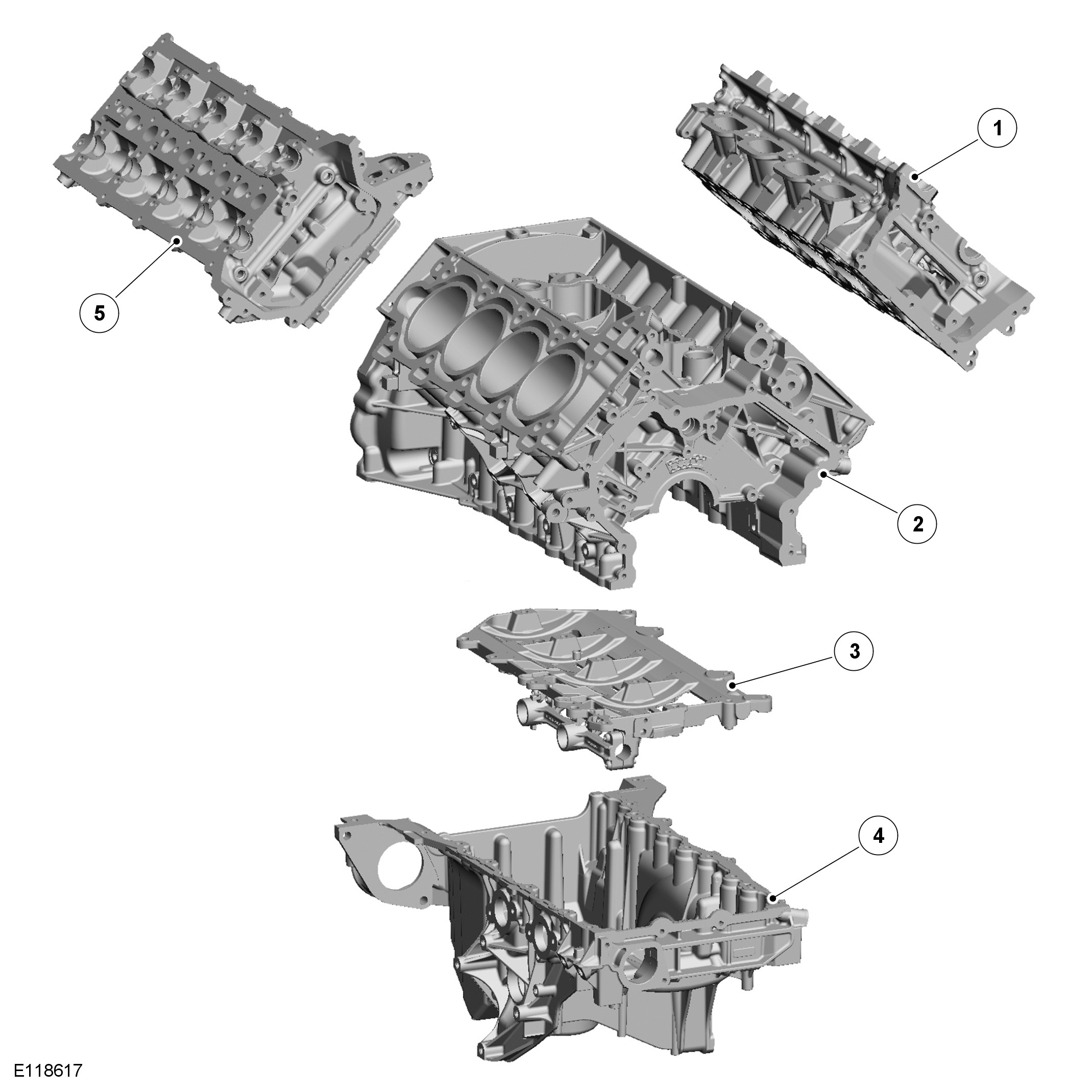 The main structural components of the engine are all manufactured from aluminum alloy. The engine is built around a very stiff, lightweight, enclosed V, deep skirt cylinder block. A structural windage tray is bolted to the bottom of the cylinder block to further improve the block stiffness, minimize NVH (noise, vibration and harshness) and help reduce oil foaming. To further enhance the stiffness of the lower engine structure, a heavily ribbed sump is installed. The sump also helps to reduce engine noise. A transverse hole is incorporated into the sump to accommodate the RH (right-hand) front drive halfshaft.