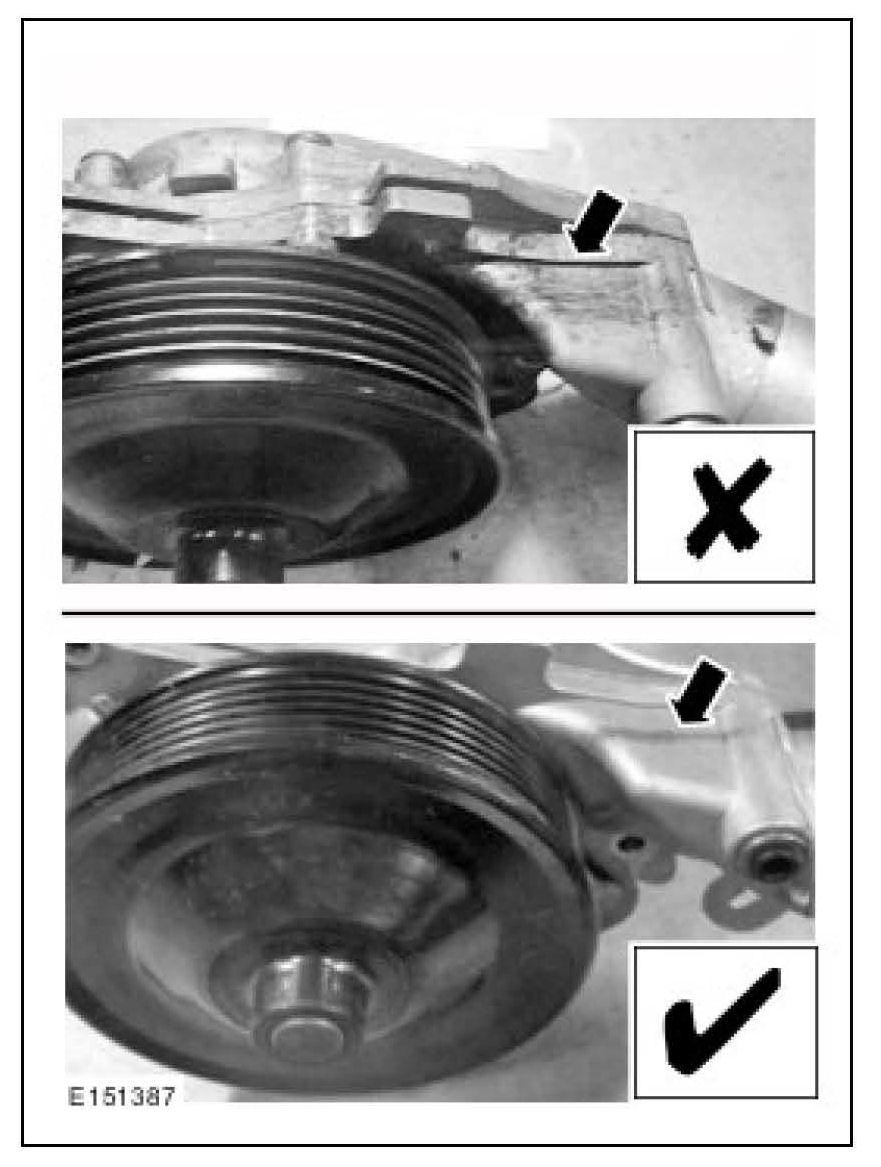 9. If there is excessive play in the pulley bearing, refer to Workshop Manual section 303-03 and replace the coolant pump; to be carried out as a separate claim.