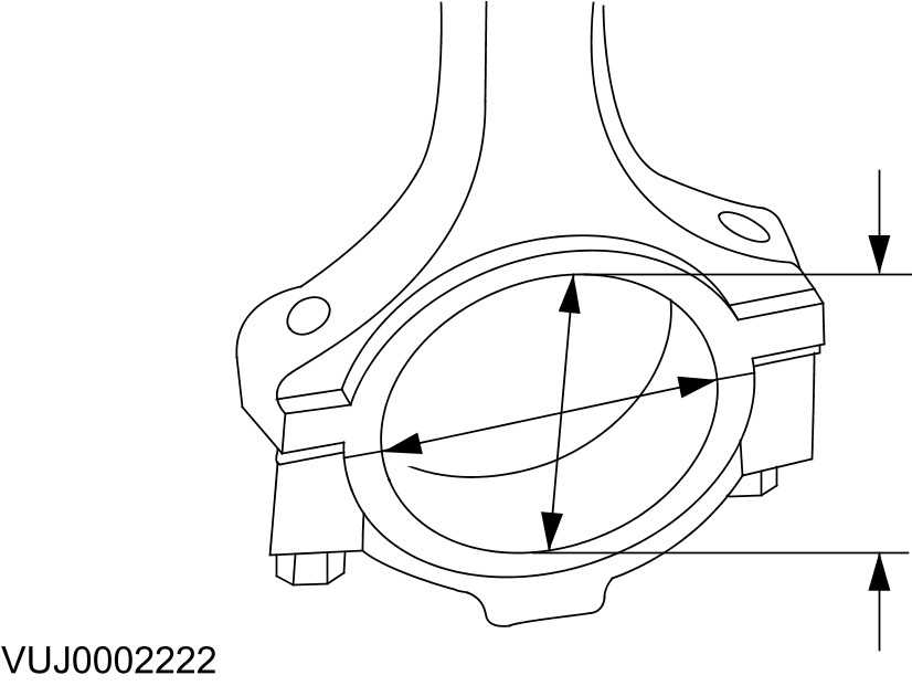 1 Measure the bearing bore in two directions. The difference is the connecting rod bore out-of-round. Verify the out-of-round is within specification.