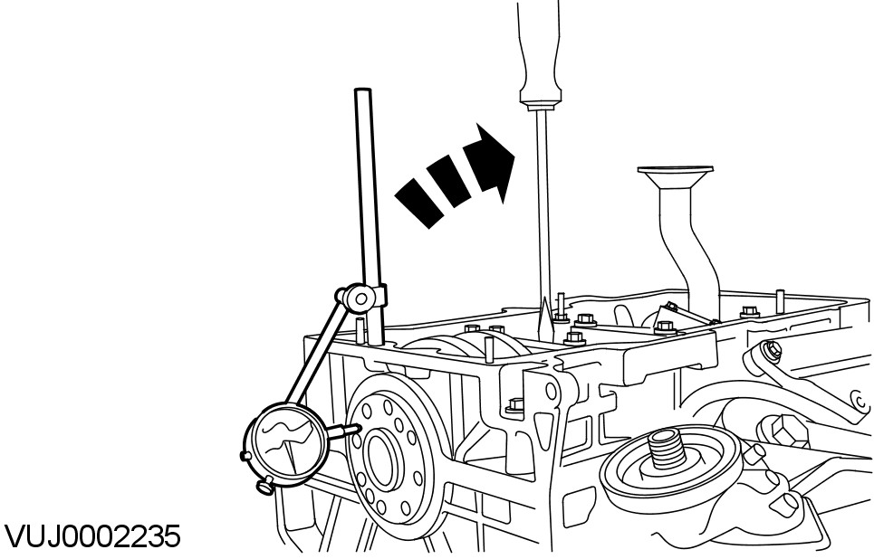 - Measure the end play by lifting the crankshaft using a lever.