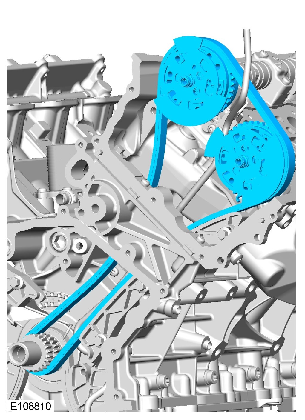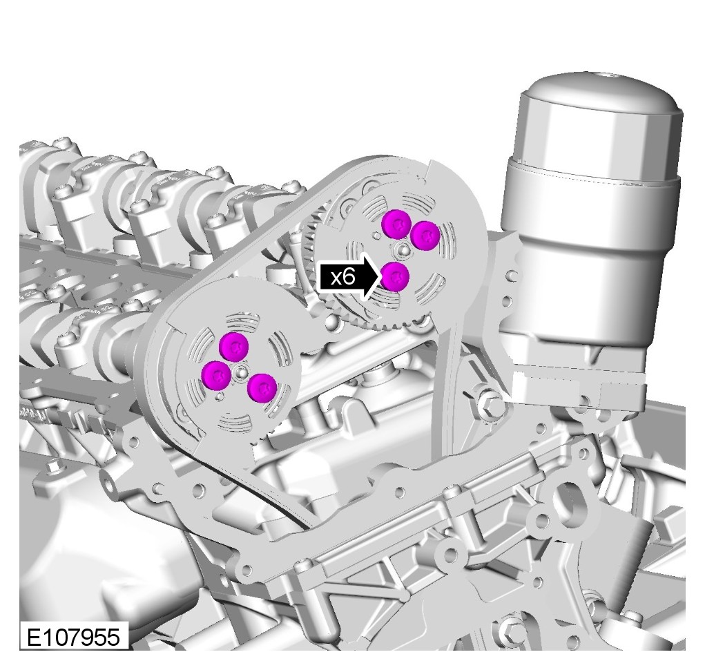 1 Make sure the tensioner piston is fully extended. Then fully depress and lock the tensioner piston with the grenade pin before installation, failure to do this may result in damage to the engine.