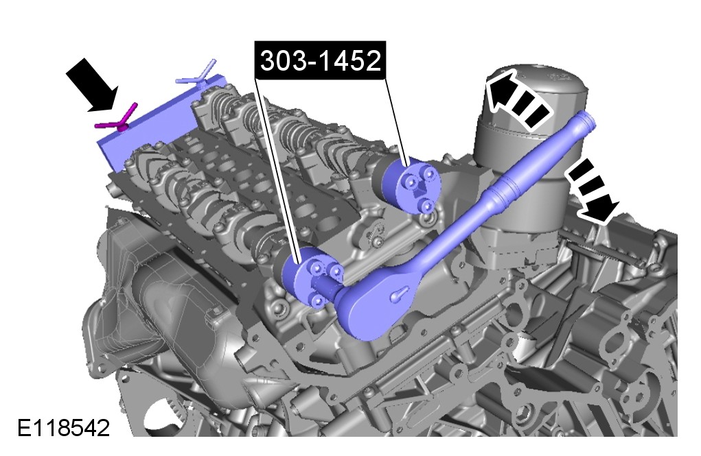 CAUTION: If the special tool cannot be installed, return to step 22 of the installation until the special tool 303-1445 is installed correctly.
