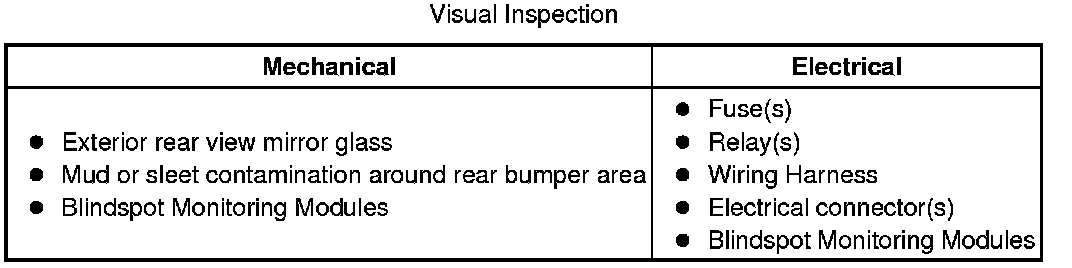 - Check for contamination (e.g. dirt, grime, frosting, ice) around the blindspot monitoring sensors and clear.