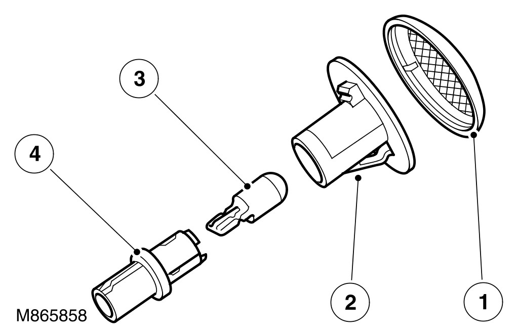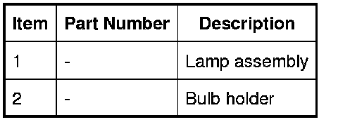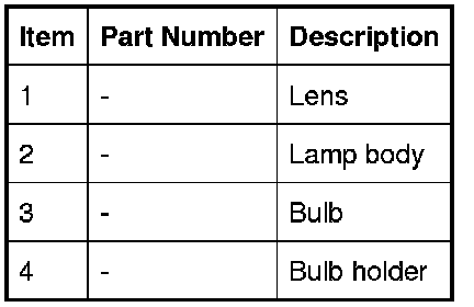 The 55W halogen bulb is located in a holder. The holder is secured in the lamp housing by rotating through approximately 10°. The holder has a connector to allow for connection to the electrical harness.