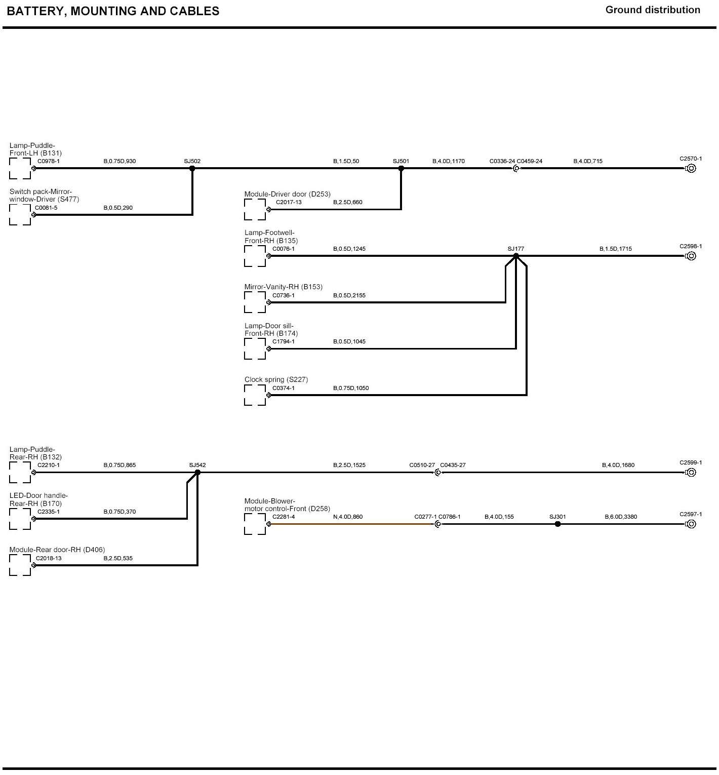 Locations: The location views for connectors and components depicted within these diagrams can be found via the connector's base number (i.e. C0570) at Vehicle/Locations/Connectors. Locations