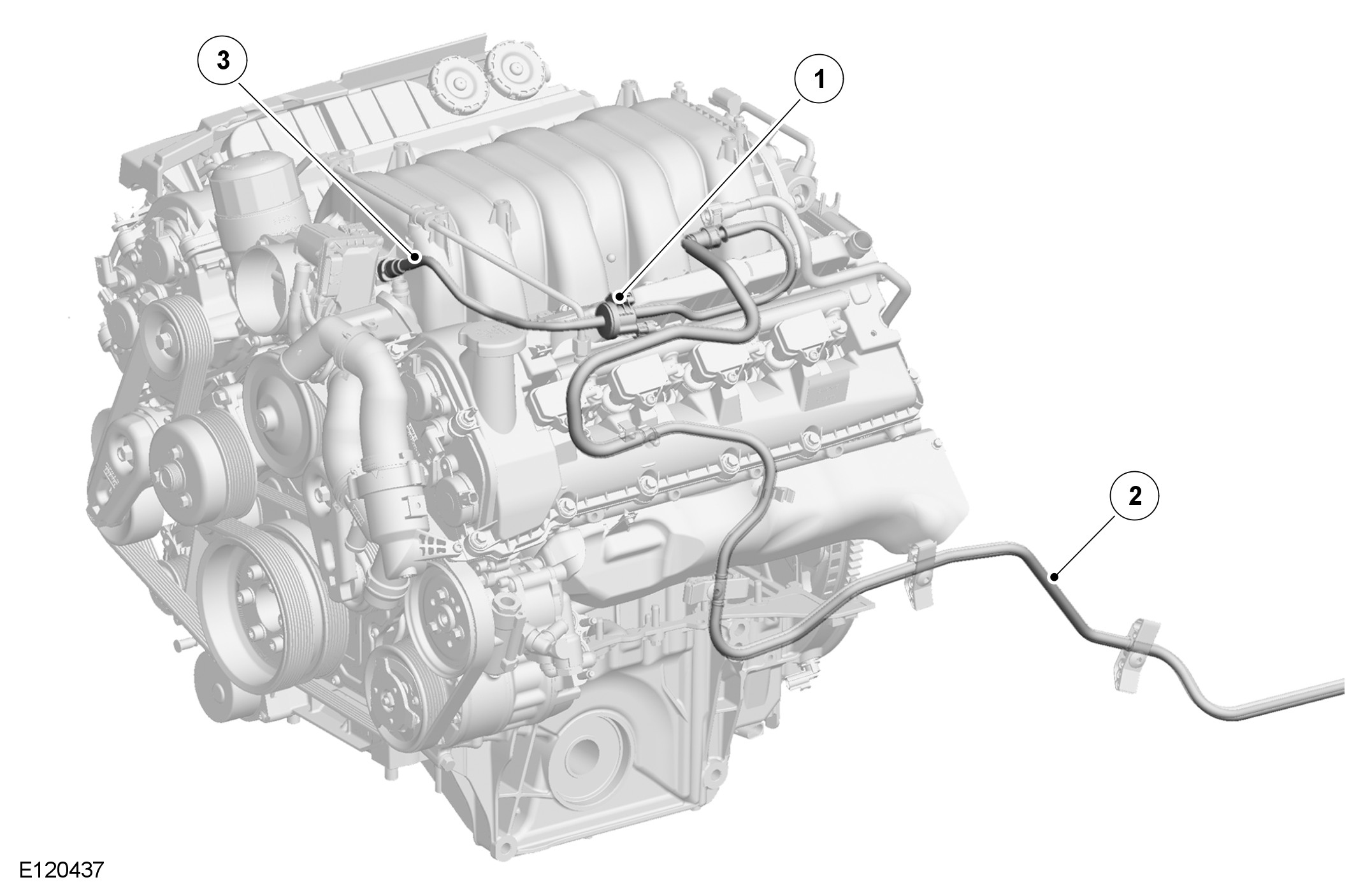 On NAS vehicles the system does not include a pressure test point. To pressure test the pipes of the purge system a special tool must be installed in the quick release connector adjacent to the purge valve or at the engine. This enables a pressure test of the pipes from the purge valve to the charcoal canister or from the engine to the purge valve.
