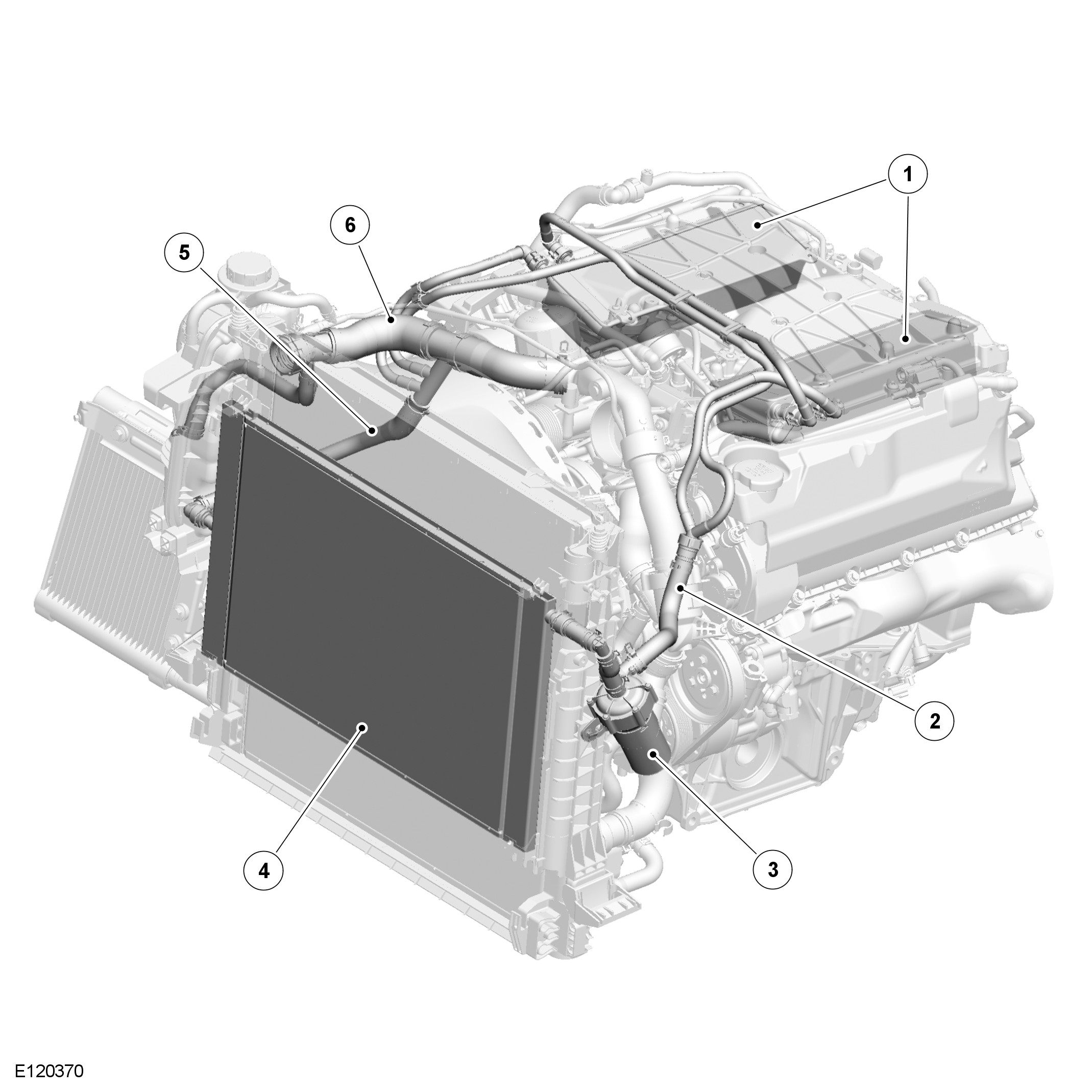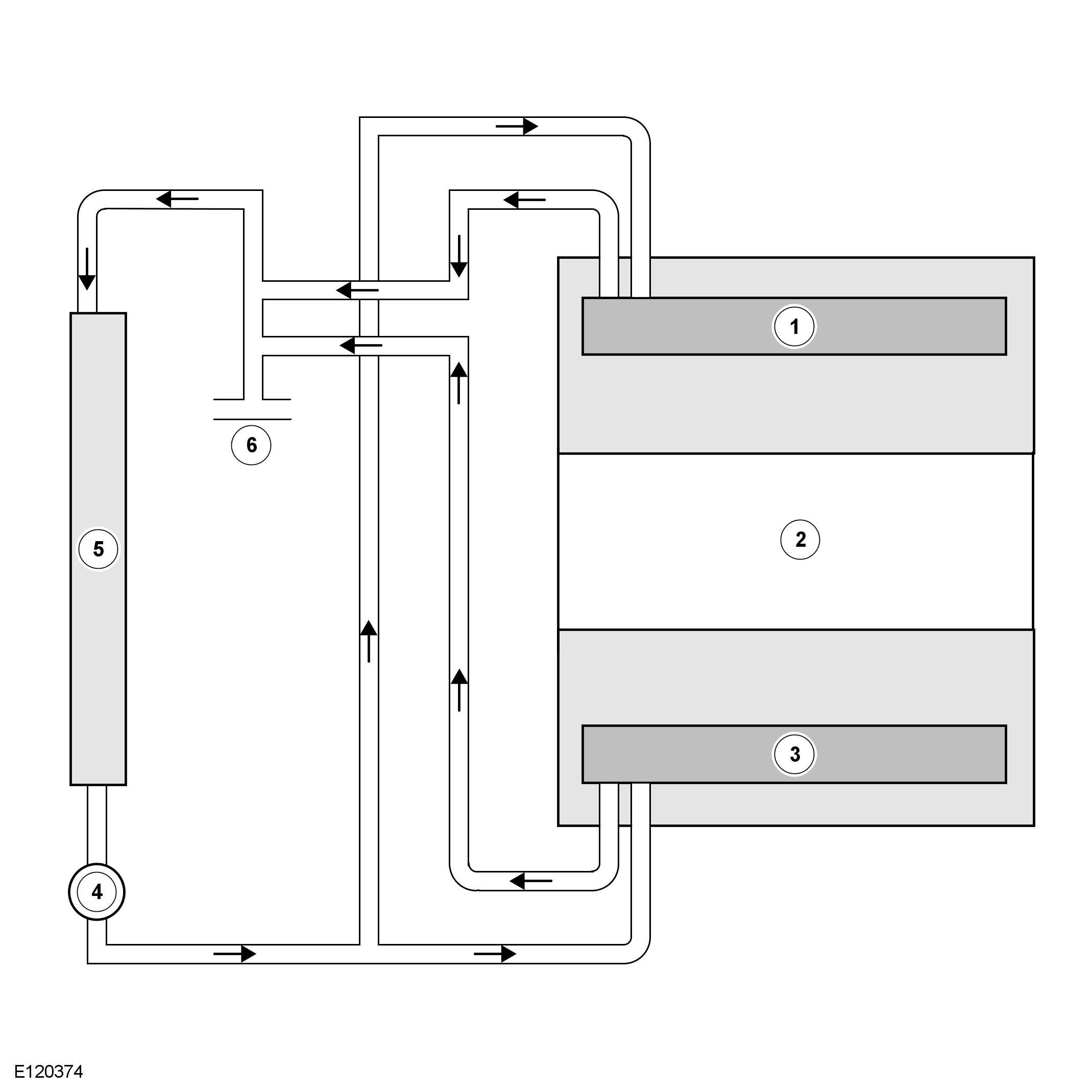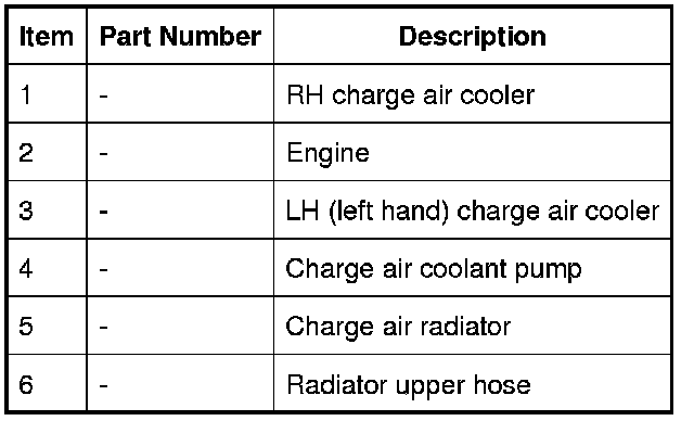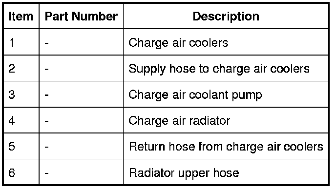 When the charge air coolant pump is running, coolant flows from the pump outlet through the charge air coolers, the charge air radiator and back to the pump inlet.