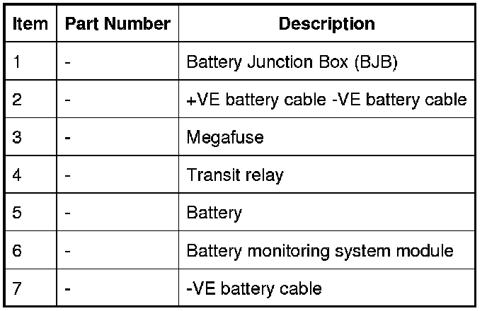 The BJB (battery junction box) is located in the engine compartment, on the RH (right-hand) side of the engine compartment. The BJB (battery junction box) receives its main power supply from the battery via the CJB (central junction box) and contains fusible links, blade fuses and relays.