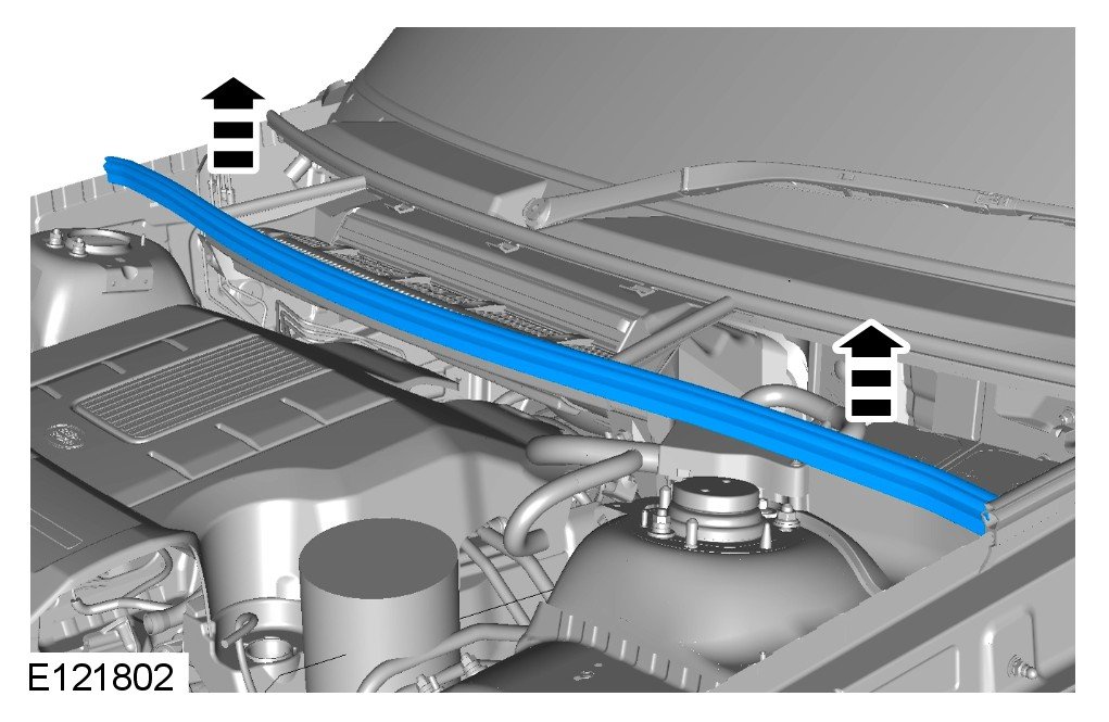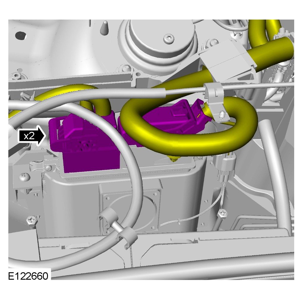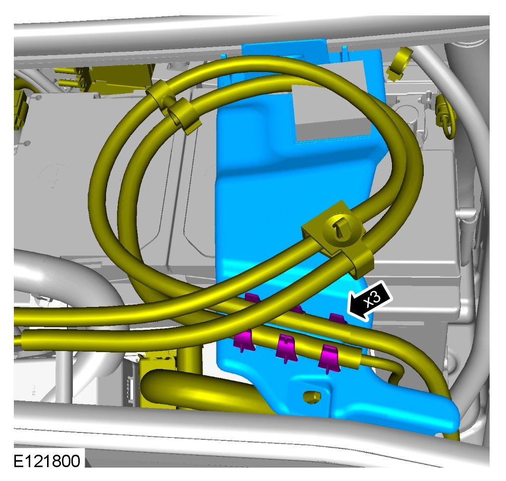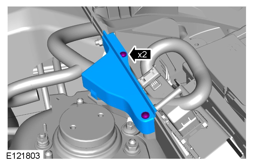 CAUTION: Make sure that the battery is positioned fully outboard on the battery tray and that no harnesses or hoses are trapped before securing the battery with the bolts.