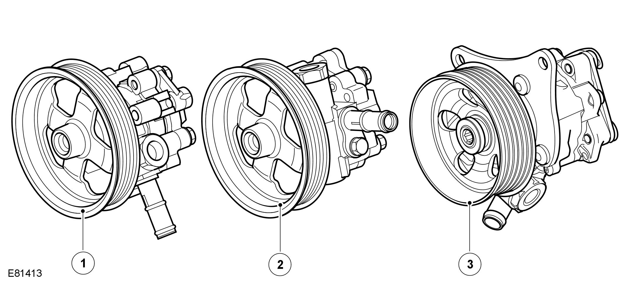 The power steering pumps used are basically the same pump with different connection fitments, therefore they are not interchangeable. The pump is a positive displacement, vane type pump which supplies hydraulic pressure to the steering gear valve unit. The pump is driven by a Poly Vee belt from the crankshaft pulley and output from the pump increases proportionally with engine speed. A self-adjusting tensioner is fitted to maintain the correct tension on the belt.