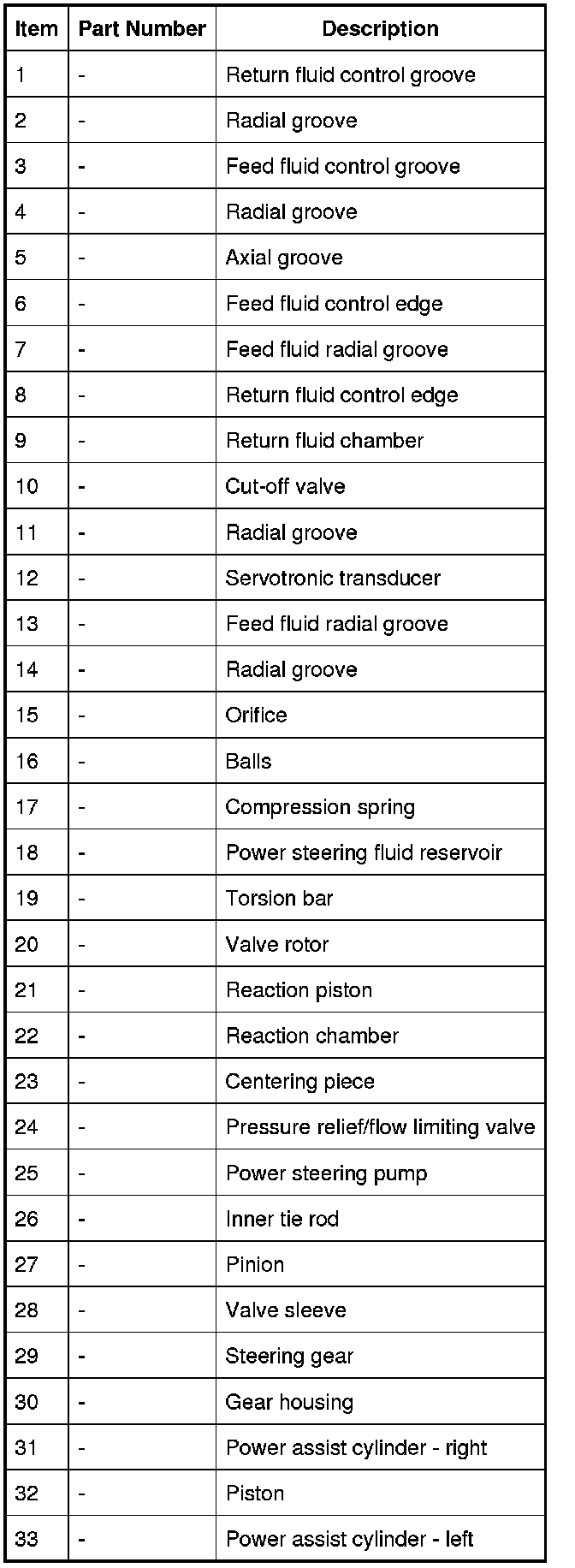 As the vehicle is driven and the road speed increases, the GEM (generic electronic module) microprocessor analyses the road speed signals from the ABS (anti-lock brake system) module and reduces the amount of control current supplied to the Servotronic valve. The Servotronic valve reacts to the control current and opens the valve by an amount appropriate to the road speed. This allows a controlled fluid supply from the feed fluid radial groove to the reaction chamber. The orifice prevents the loss of large amounts of fluid to the return fluid chamber. The higher fluid pressure acting on the reaction piston causes compression of the balls which are located between the reaction piston and the centering piece which in turn is securely connected to the valve sleeve. When driving in a straight line, this has a positive effect on the exact