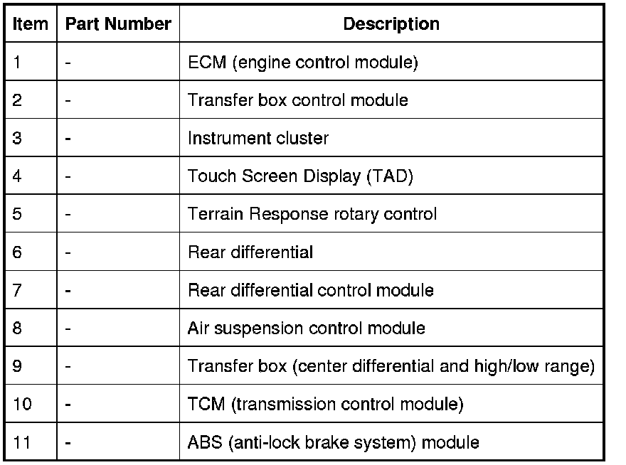 The following vehicle subsystem control modules are used for the Terrain Response system: