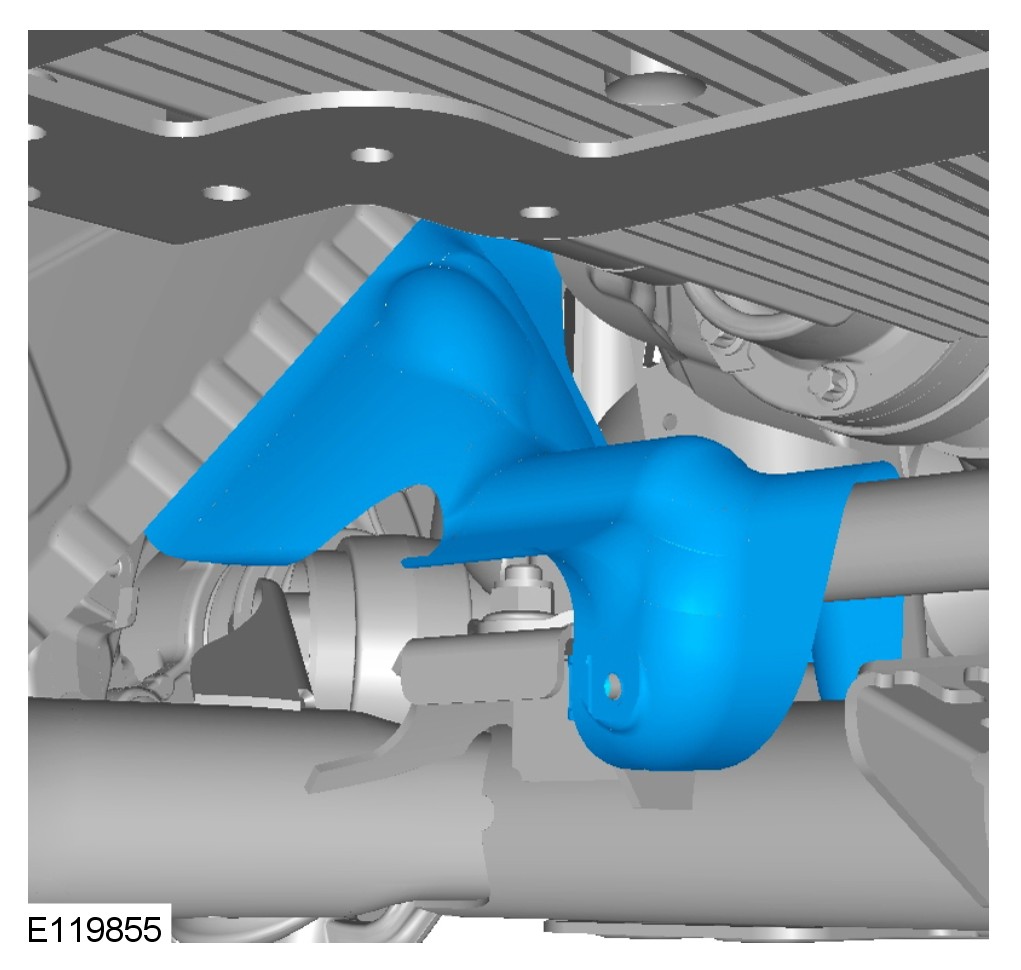 9 Install the engine undershield. For additional information, refer to Engine Undershield Engine Undershield