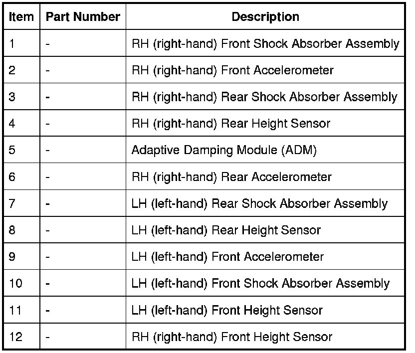 The accelerometers measure acceleration in the vertical plane and output a corresponding analogue signal to the ADM. The algorithms in the ADM calculate the heave, pitch and roll motions of the vehicle, which are used by the controller to control road induced body modes.