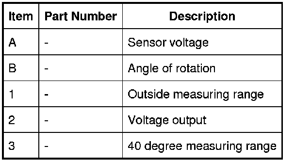 The sensing element consists of an array of hall effect devices arranged to measure the direction of the magnetic field of a small magnet attached to the end of the sensor shaft. As the sensor shaft rotates, so do the lines of magnetic flux from the magnet. The signals from the Hall effect elements are processed by means of a dedicated integrated circuit to generate an output voltage that varies as the sensor shaft is rotated. The sensor has a measurement range of ± 40° around its nominal position and the nominal sensitivity is 57 mV/° of shaft rotation. The graphic below [Fig:9] describes the repetition of the output signal as the sensor is rotated through and beyond 40°
