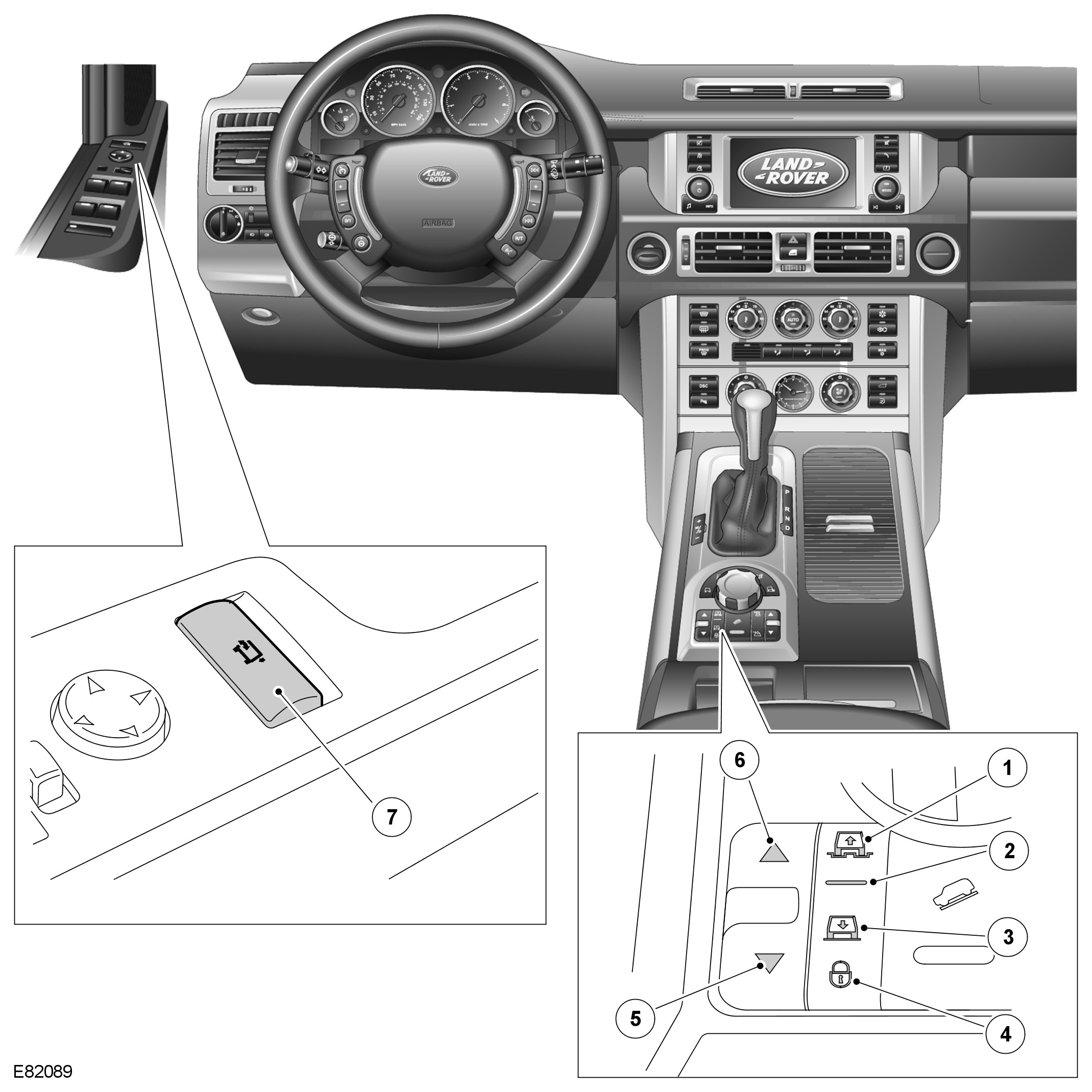When the engine is switched off, the air suspension control module will cause the vehicle to lower to a height of -60mm to allow the vehicle to be strapped down. While the height is changing, all the LED (light emitting diode)'s in the air suspension control switch will flash. When the height of -60mm is reached, all the LED (light emitting diode)'s will illuminate continuously.