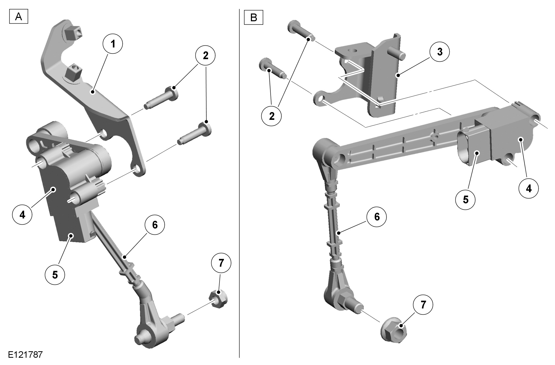 A height sensor is fitted in each corner of the vehicle to monitor the ride height of the vehicle. The sensors are mounted on the front and rear subframes, with a mechanical link to the suspension lower arms. There are four different types of sensor fitted.