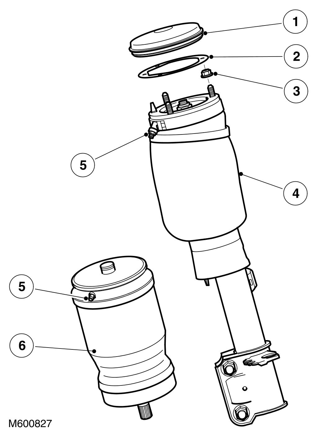 The air springs on the front and rear suspension are similar in construction. The air springs are manufactured from a flexible rubber and each air spring forms an air tight cavity which provides the required spring rate for each corner of the vehicle.