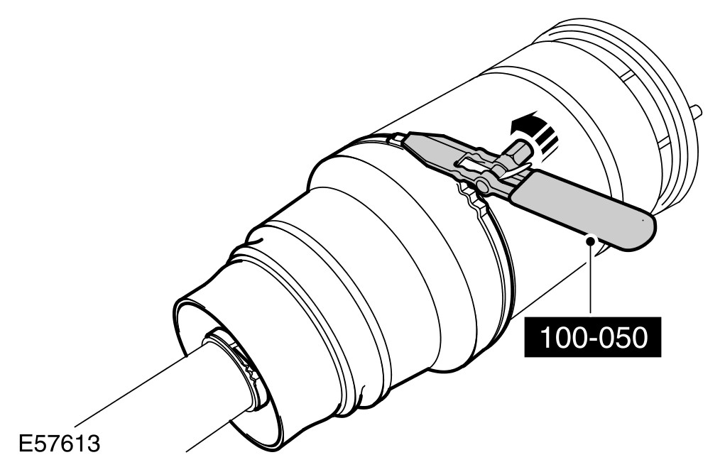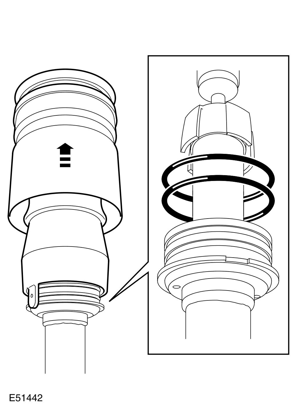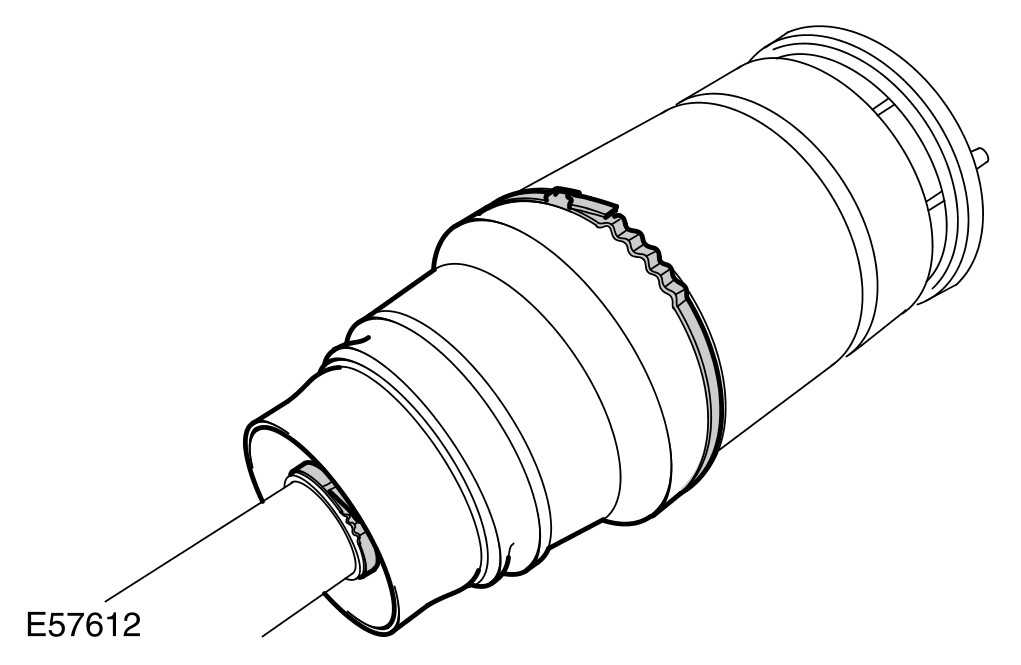 - Using the special tool coupled to a tire inflator with a gauge, apply approximately 2 bar of air pressure to the air spring to fully seat the piston over the O-ring seals.