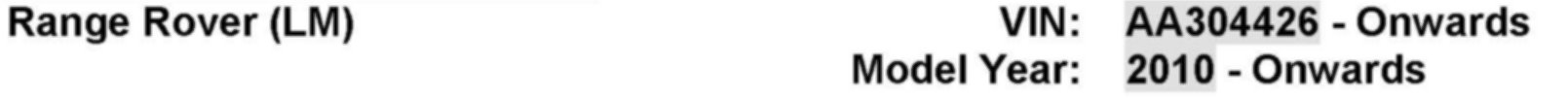 AFFECTED VEHICLE RANGE