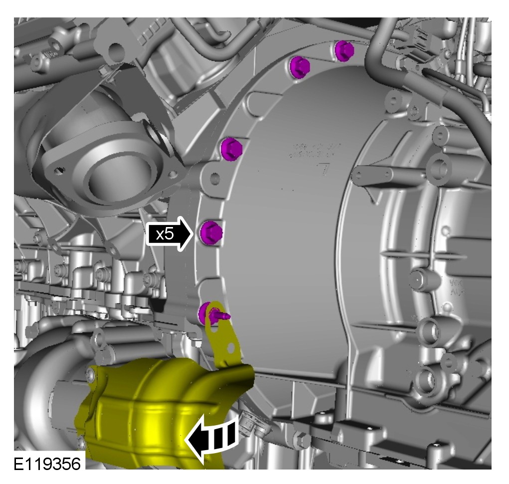 Make sure that the alignment mark is visible through the inspection hole on removal of the last torque converter bolt.