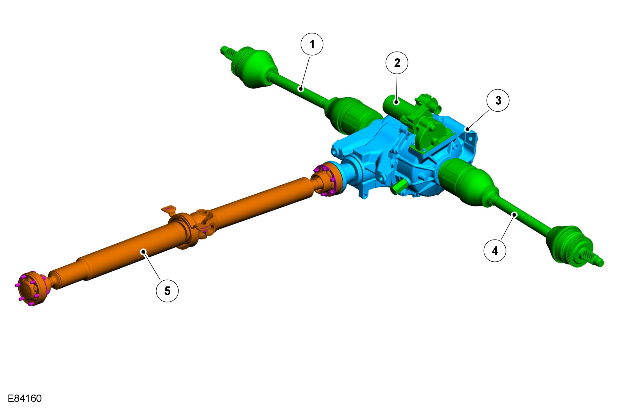 The rear differential converts the 'angle of drive' through 90 degrees and distributes drive, via the rear drive halfshafts, to the rear wheels.