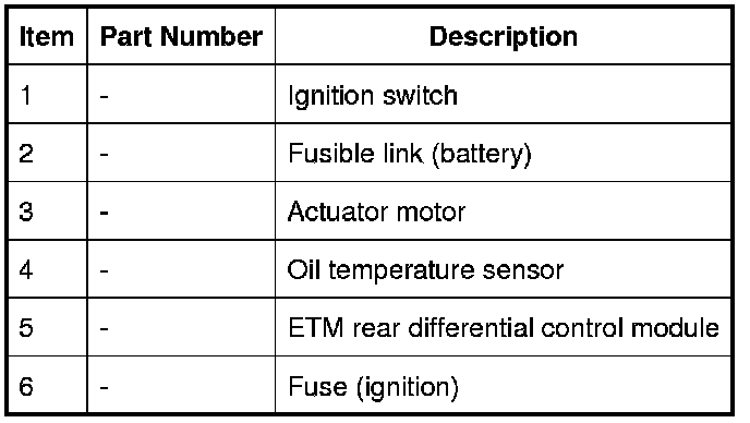 The ETM rear differential control module uses Diagnostic Trouble Codes (DTC), which relate to ETM rear differential electrical faults.