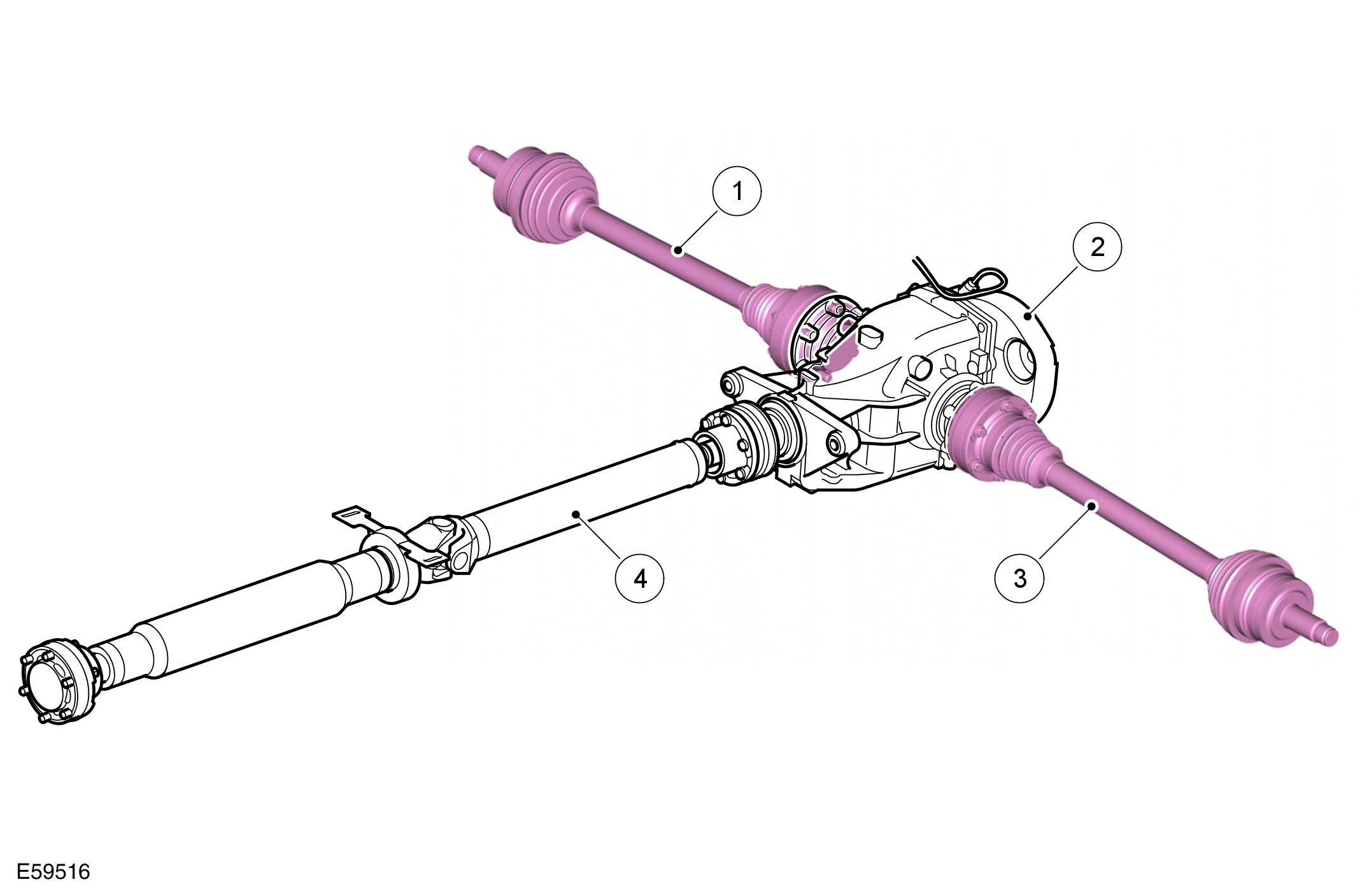 The rear drive halfshafts are identical in their construction with the LH shaft being slightly longer than the RH shaft. Each shaft has a constant velocity (CV) joint at each end to allow for suspension movement.