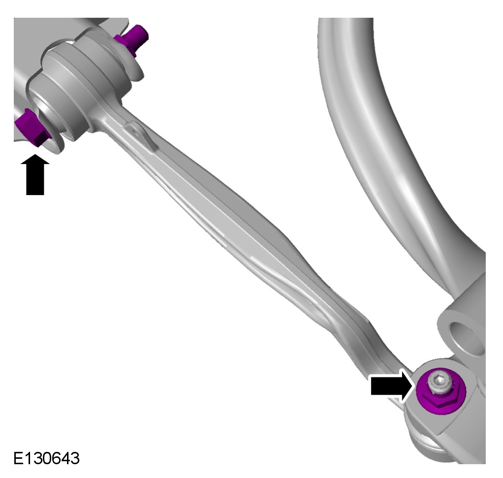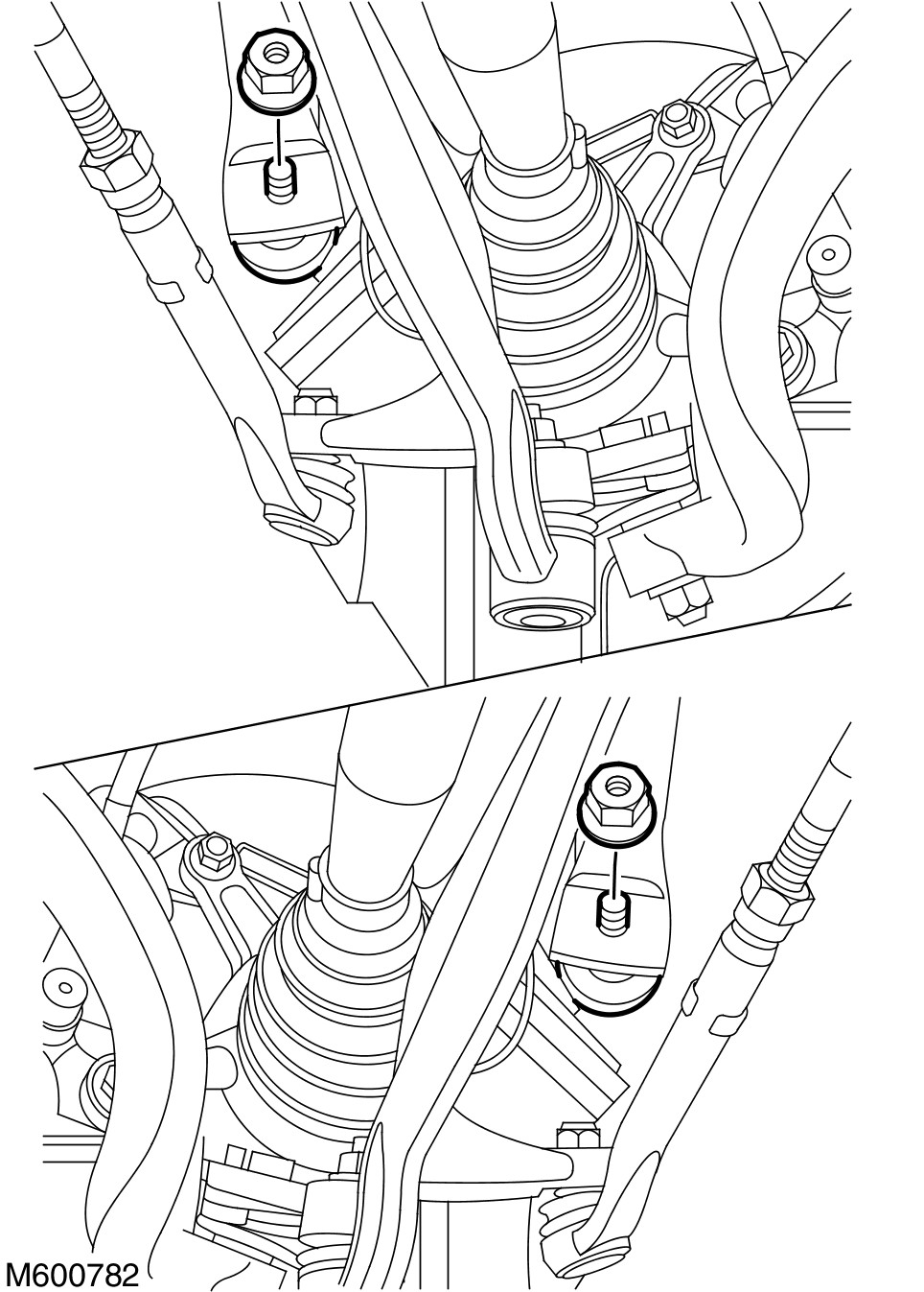 - Tighten the lower arm nut and bolt to 165 Nm (122 lb.ft) plus a further 90 degrees.