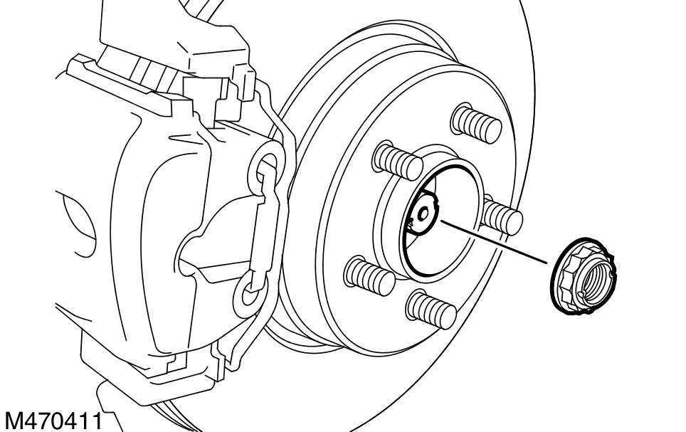 - Install new nut and and tighten to 80 Nm (59 lb.ft).