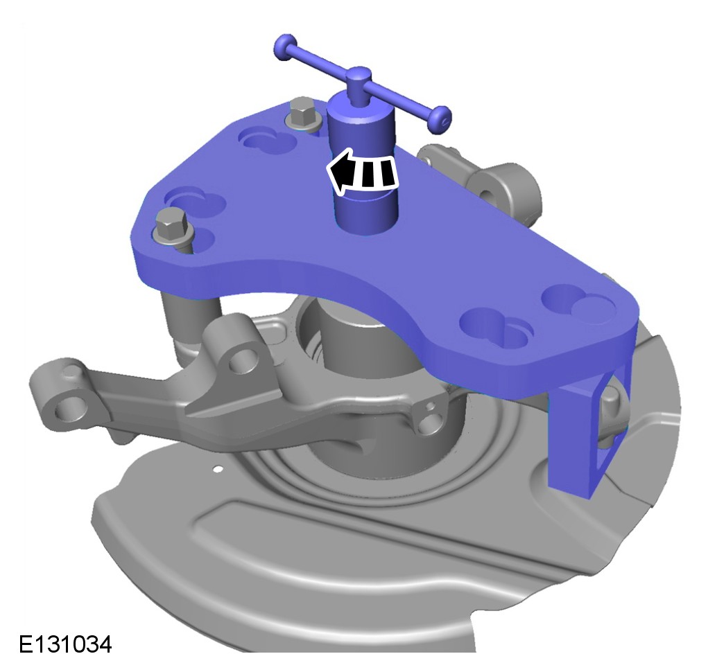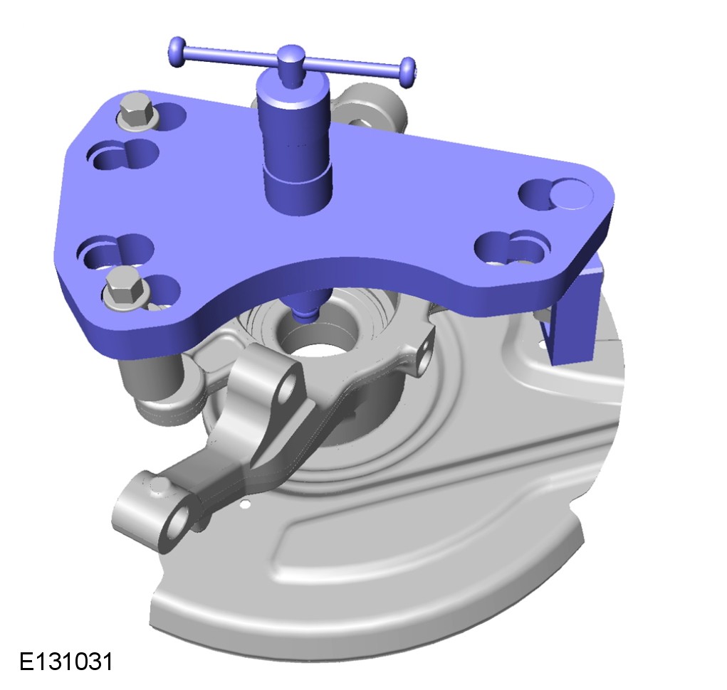 Using a hydraulic press, install the wheel bearing into the wheel knuckle assembly.