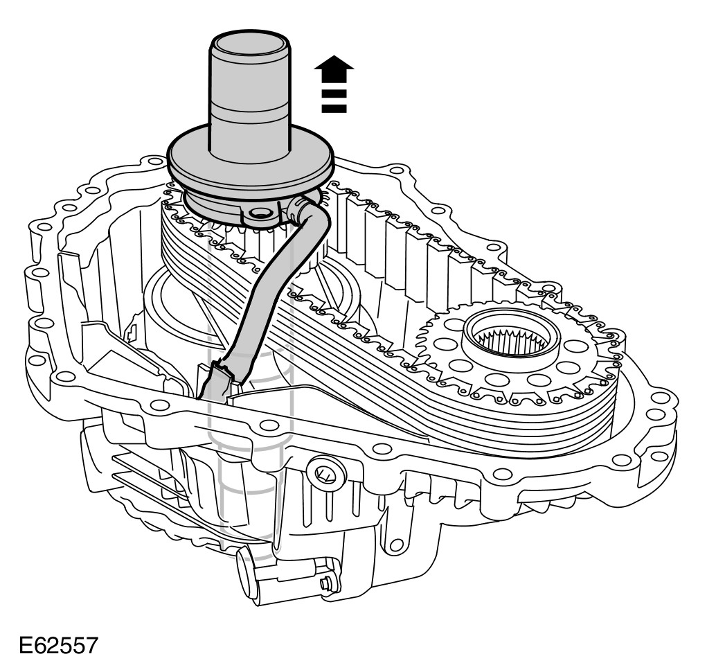 4 Remove the transfer case. For additional information, refer to Transfer Case - 5.0L