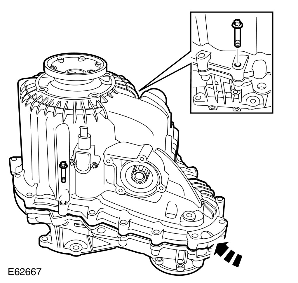 - Evenly tighten the 2 Torx bolts shown to 35 Nm (26 lb.ft).