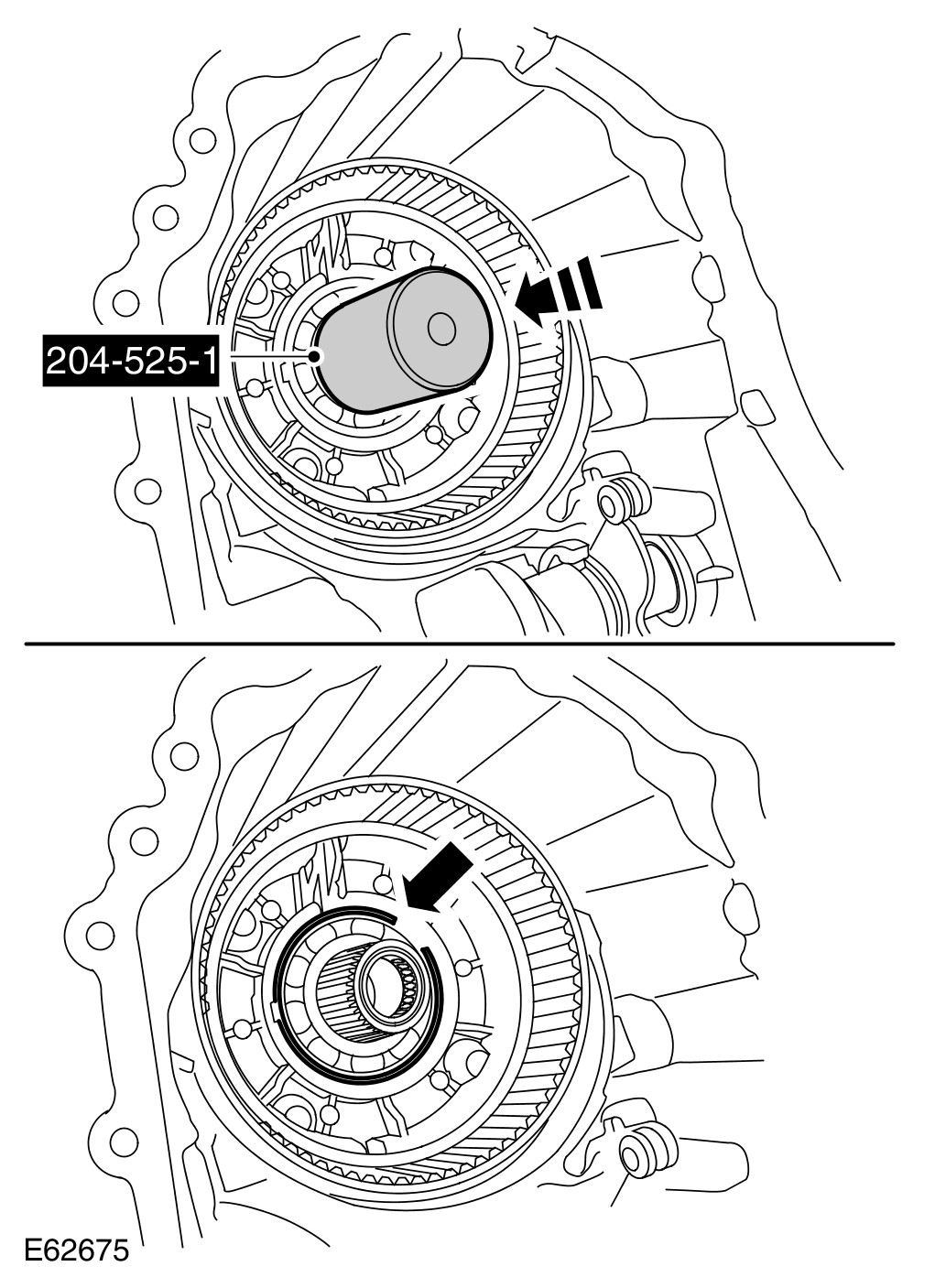 CAUTION: Extreme care is necessary to make sure the snap ring enters the bearing squarely.